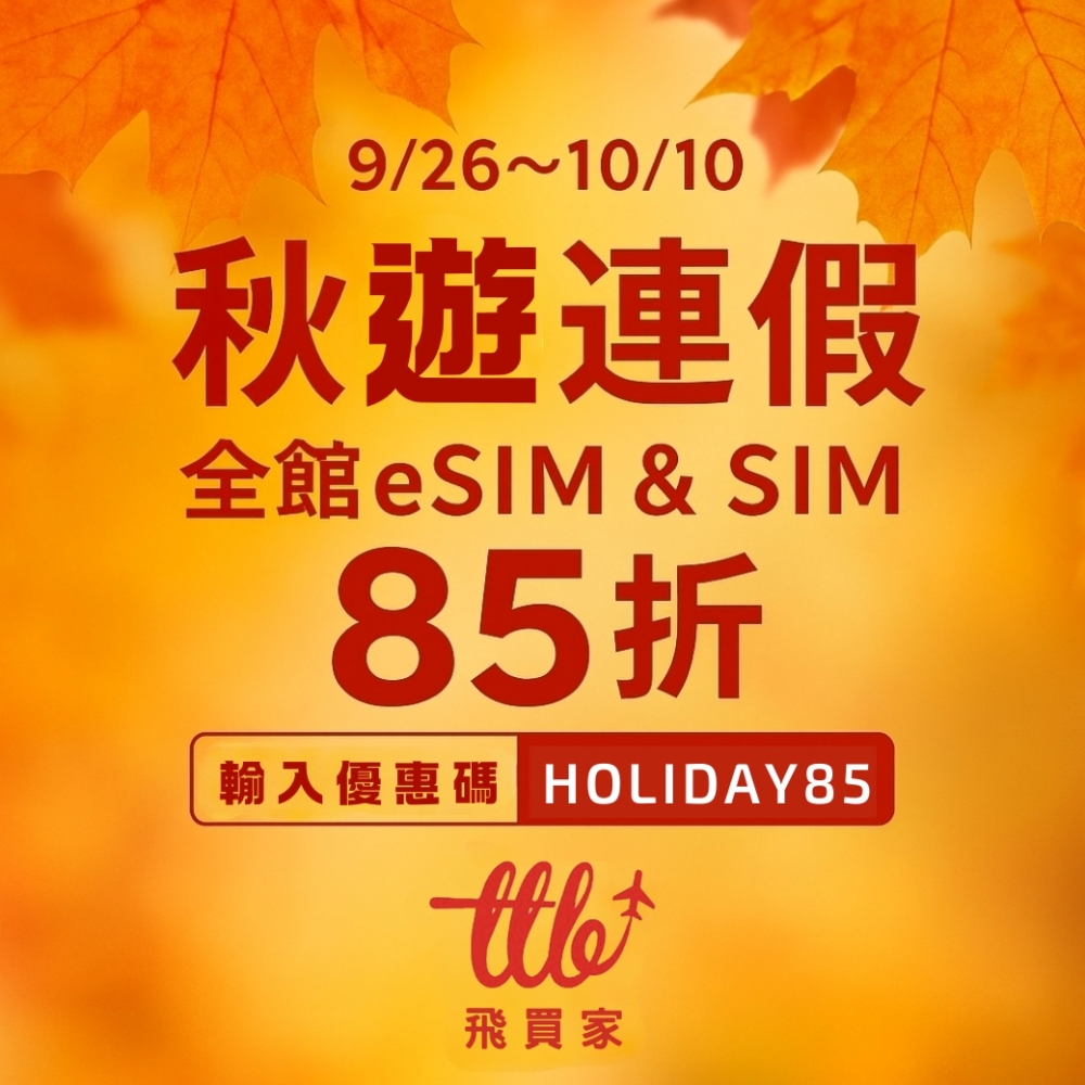2025/9/26~10/10 網卡/eSIM 85折優惠碼:HOLIDAY85