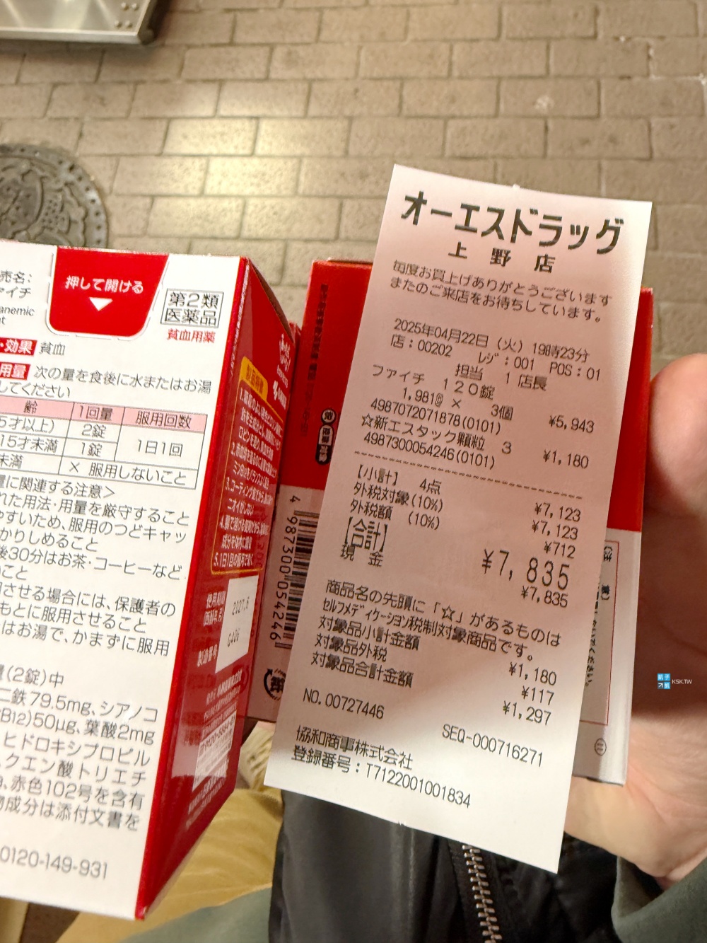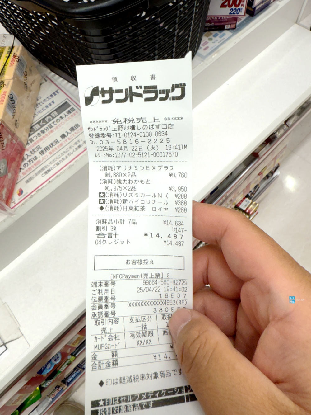 OS DRUG上野店的發票,提供參考。