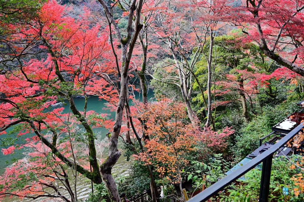 特別是如果您可以遇到這區紅葉都變紅時,就會如照片這樣的景色,我認為也是真正可以體會到嵐山紅葉進入最美階段的魅力時刻。
