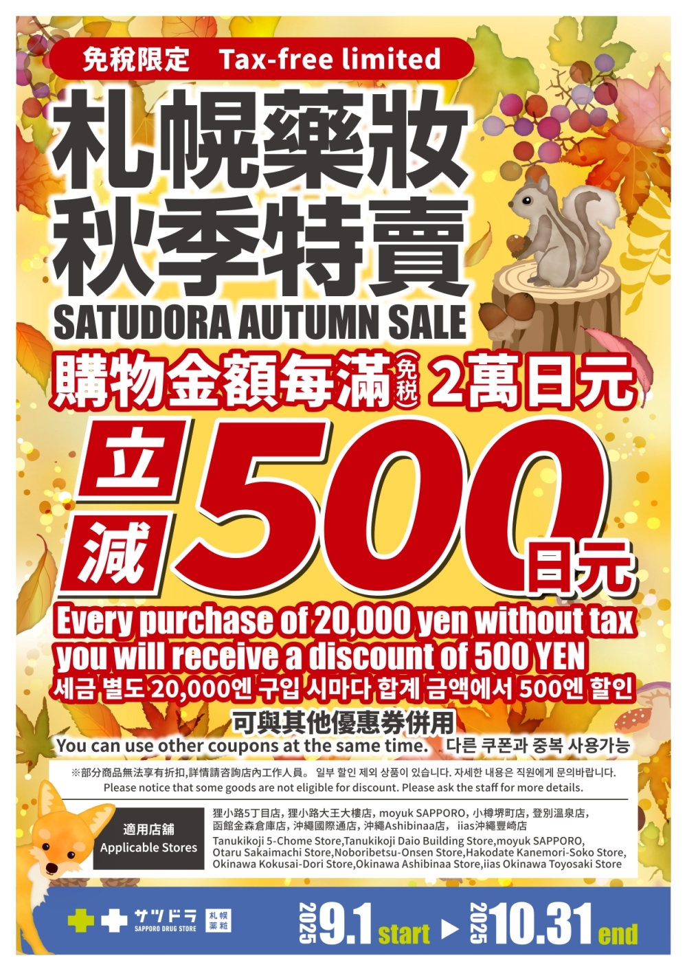 *期間限定特別優惠券-札幌藥妝秋季特賣