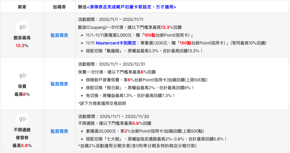 *2025/11更新,最新領券加碼活動
