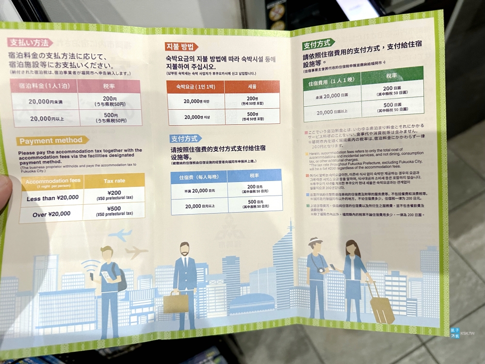 2023年9月那時候我在這間住宿,福岡市區就已經在課每人200~500日圓的宿泊稅了,那是訂房網站當中不包含的價格,您到現場付款時還會被加上這筆費用。