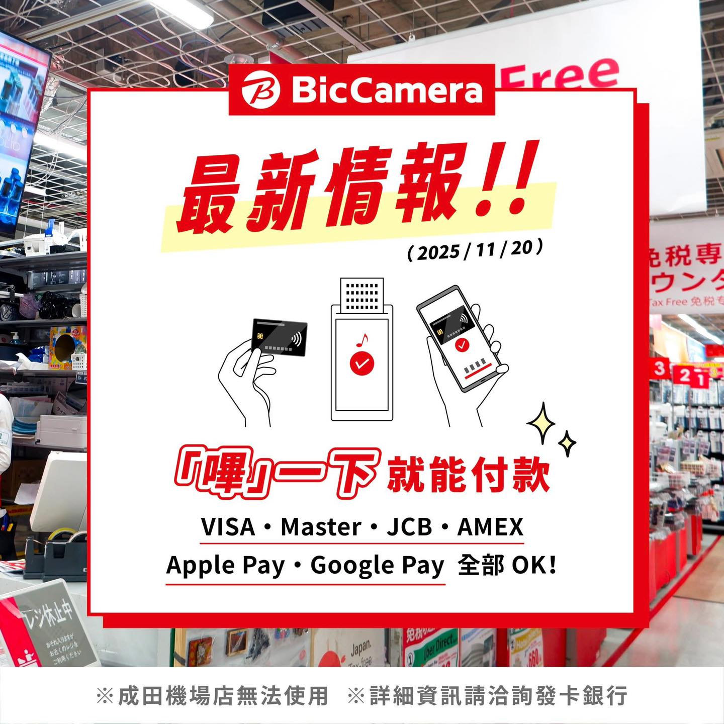 VISA/MASTER/JCB/AMEX信用卡/Apple Pay / Google Pay 這些都 OK!嗶一下即可付款!