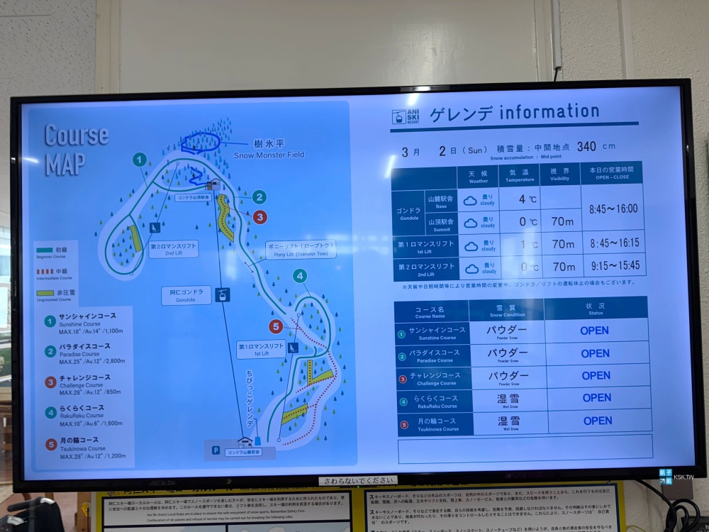 其實我覺得大老遠跑來這邊,遇到不錯天氣的話,真的可以考慮來順便滑個雪。這個雪場看起來不算太複雜,也有很多綠色的初級路線。