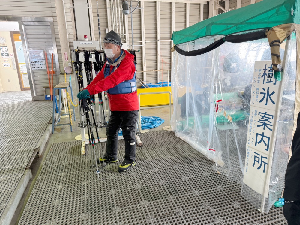 下纜車之後,可以免費租借雪杖,方便您在雪中行走。