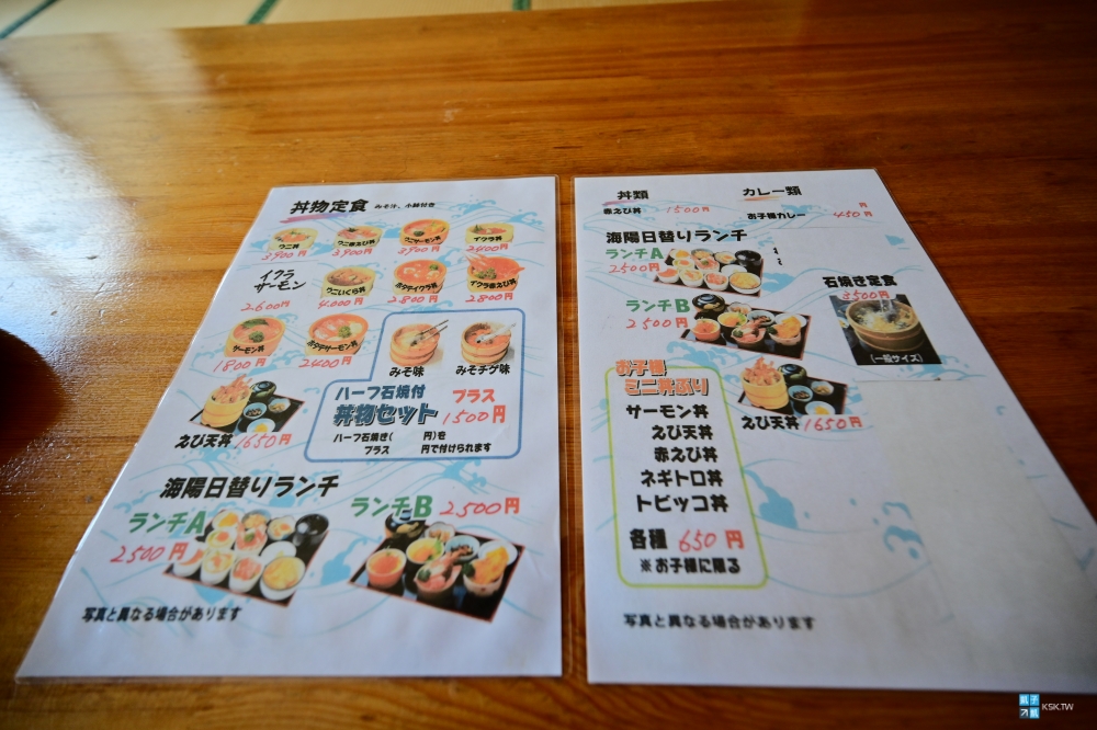 結果海鮮一整個超新鮮的!我點了ホタテサーモン丼,2400円,不算太貴!吃完我看到隔壁桌的夫婦各點了A跟B的午間套餐,可以吃到好幾種海鮮,讓我口水一直流,很想再加點!而且好像該吃一下男鹿半島的名物「石燒」料理。這個景點不錯,來男鹿半島記得安排來看海景跟吃美味!
