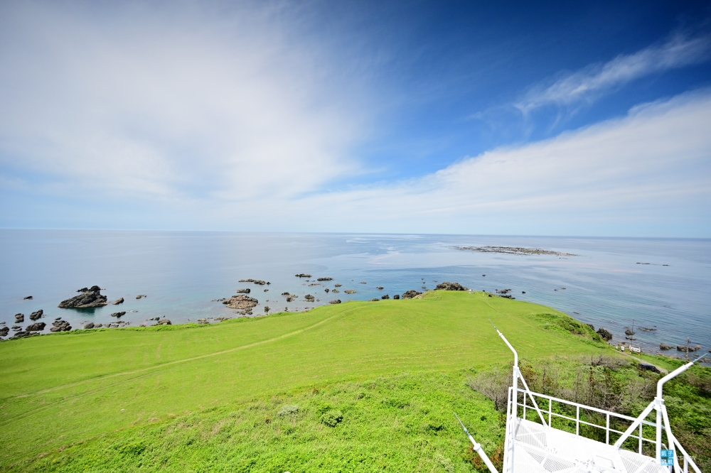 【入道崎】是秋田男鹿半島的知名景點,緊鄰日本海,可以上去「入道崎燈塔」上面欣賞無敵海景,還蠻美的!是日本少數有開放參觀可以爬上去的燈塔喔,入口處需付個300日圓見學費用,但其實夏天來到這邊還是很炎熱啦~