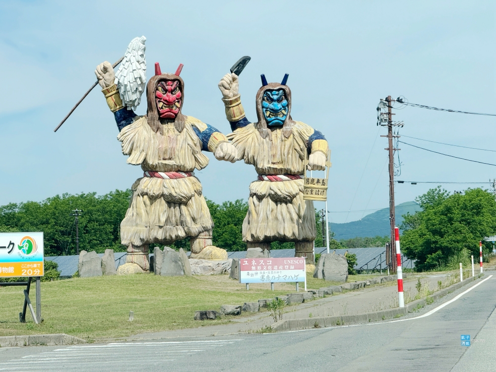 來到男鹿半島當然要認識「生剝鬼(なまはげ, Namahage)」啦!男鹿半島每年會在除夕會有這樣的傳統活動,由披著稻草衣、戴著恐怖鬼面具的「生剝鬼」走訪每戶人家,高聲咆哮著「有沒有不聽話的小孩?」、「有沒有偷懶的人?」。雖然這樣帶著鬼面具的形象很可怕,但其實是象徵著保佑家庭平安與豐收的善神,有著驅邪除惡與迎接新年的祝福意味喔!這個「男鹿生剝鬼祭」是秋田深具傳統文化特色的民俗儀式,也被列入聯合國教科文組織非物質文化遺產。