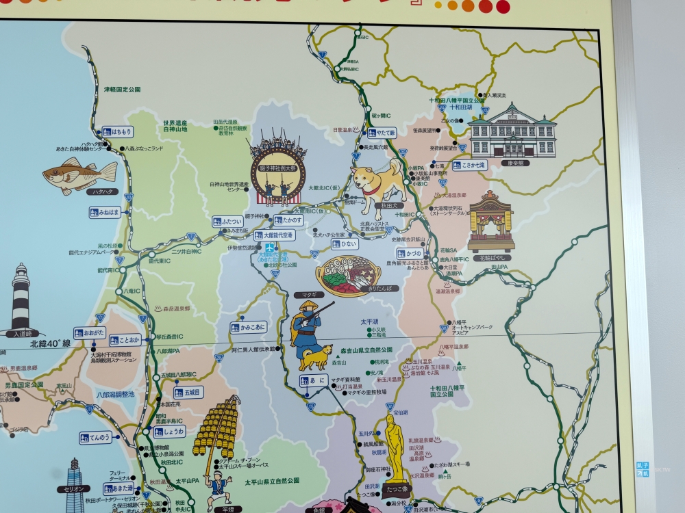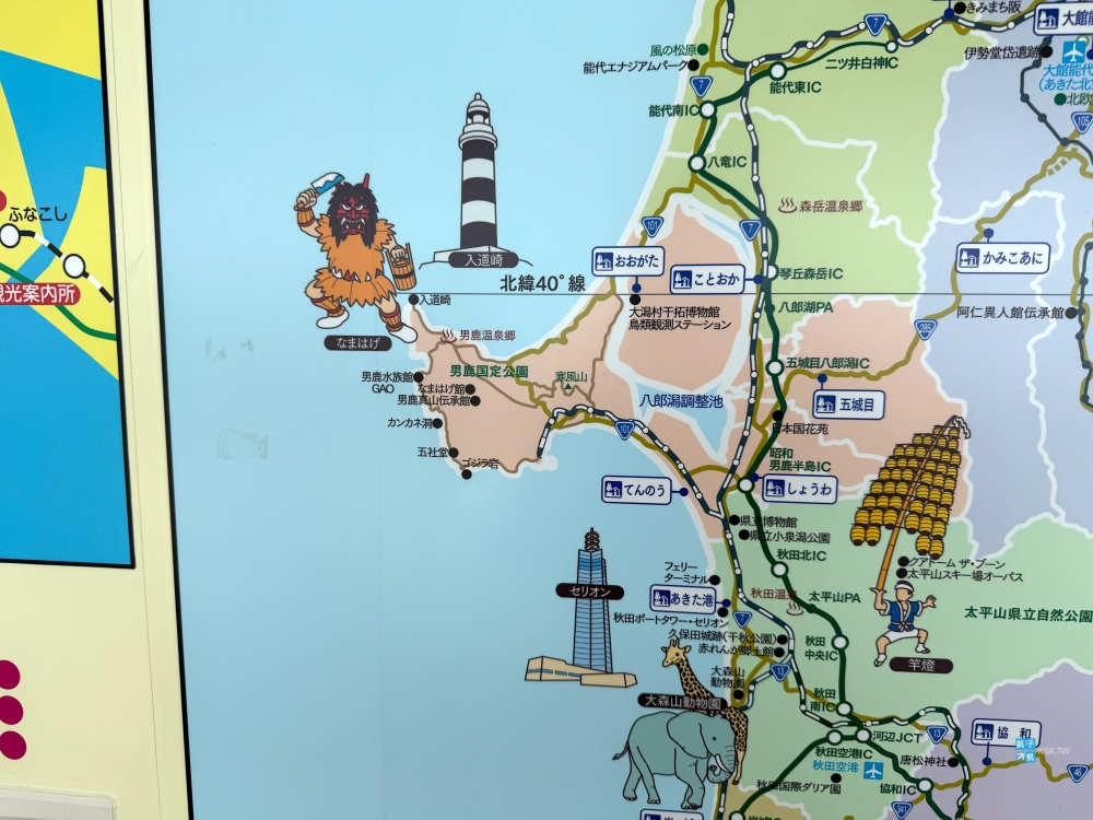秋田車站開往男鹿半島還要一個小時的車程,沿路開起來景色是相當舒服的,甚至可以路過一些道の駅是可以泡湯的喔!不過要注意,我在這邊竟然遇到路邊有警察在測速,或許這靠海的路段太好開了,大家速度很常都不小心就催上去了。