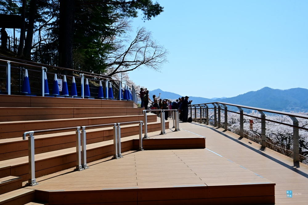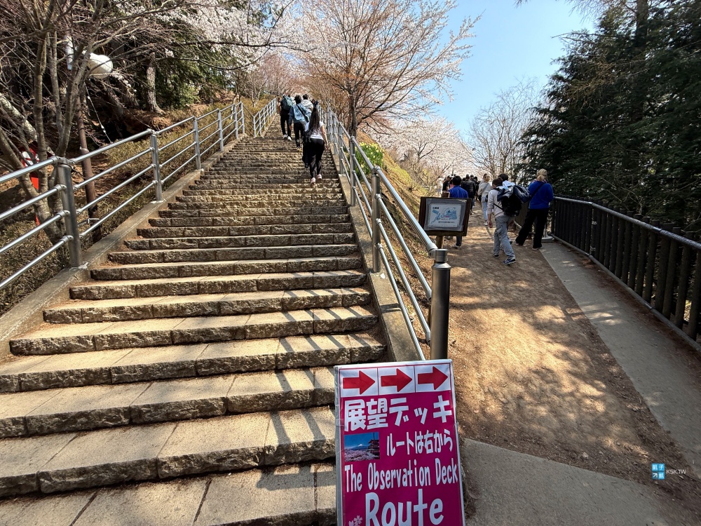 平常比較少人的話,是可以直上直下,真的會有點累喔!階梯很陡!而在櫻花季,因為會有滿滿的排隊人潮,您必須繞著旁邊走道依序排隊上去,因為等待時間較長,排隊時也可以順便拍照賞櫻,因此我是覺得還好,有休息就不會累。