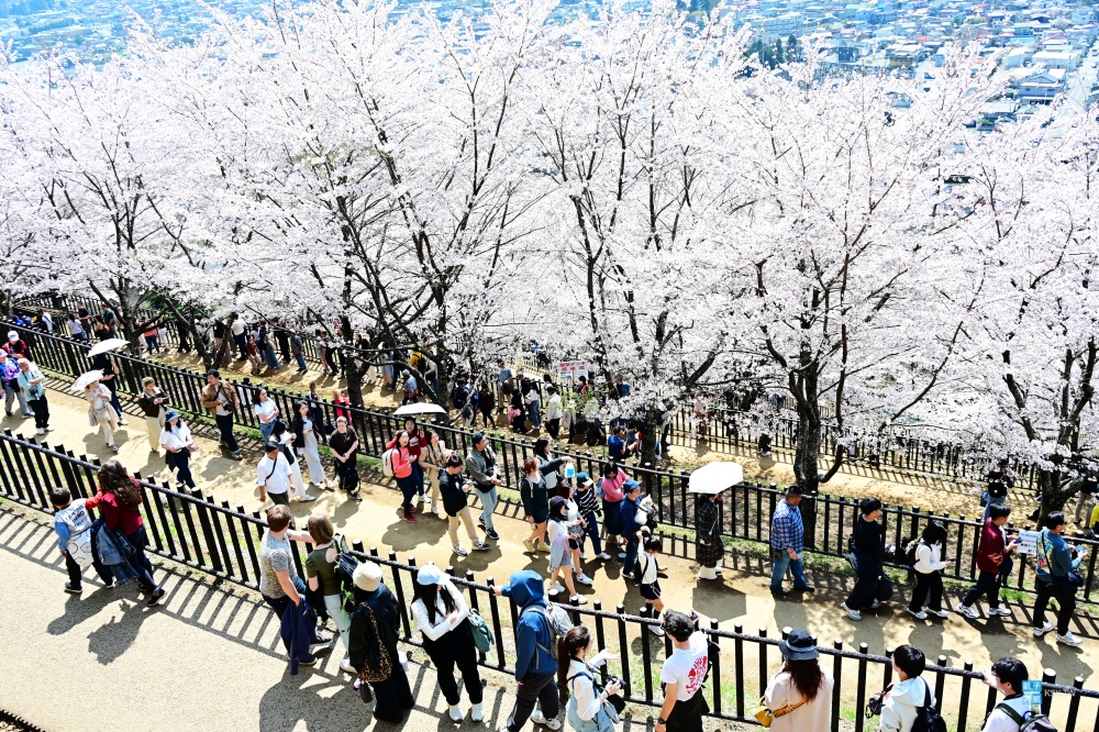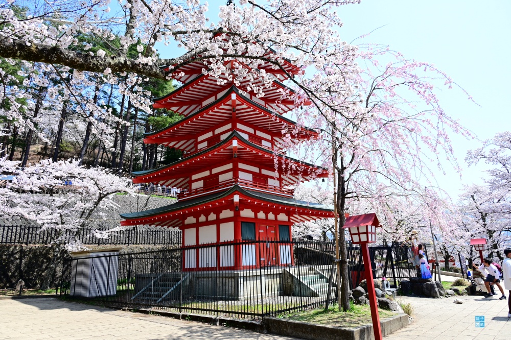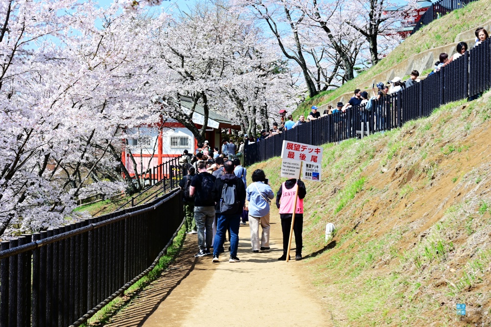 2026年「新倉山淺間公園」這邊據說是為了觀光公害的問題,而不舉辦櫻花祭,也就是沒有下面那些攤販。但我倒是覺得那還好,應該還是阻止不了想要上來拍照的旅客,而且我記得下面攤販的價格都有點偏高。