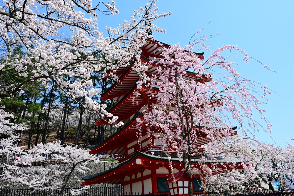 在櫻花祭期間,來到河口湖這邊想賞櫻+見到富士山,最推薦的兩個賞櫻點就是:新倉山淺間公園(新倉山淺間神社)&河口湖北岸的櫻花。由於河口湖這邊比較冷,櫻花會比關東還晚許多,每年見頃時間約落在4月中旬,剛好這段時間有在東京或者山梨的朋友,很推薦前往,這裡的櫻花實在太美了!