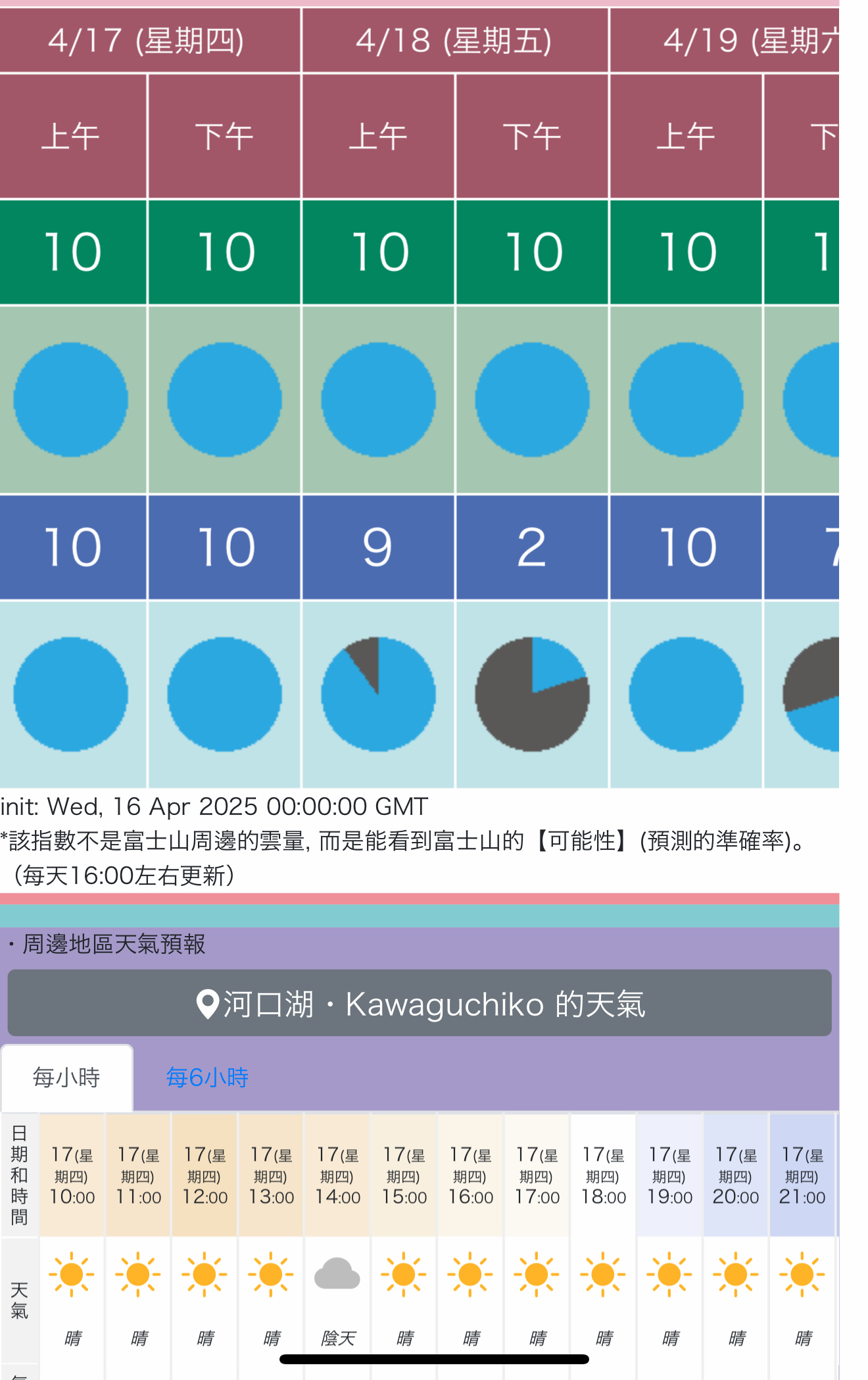 參考文章:【富士見予報】富士山能見度預測的網站 (查詢富士山能見度的網站)、富士山即時影像(Live Camera)