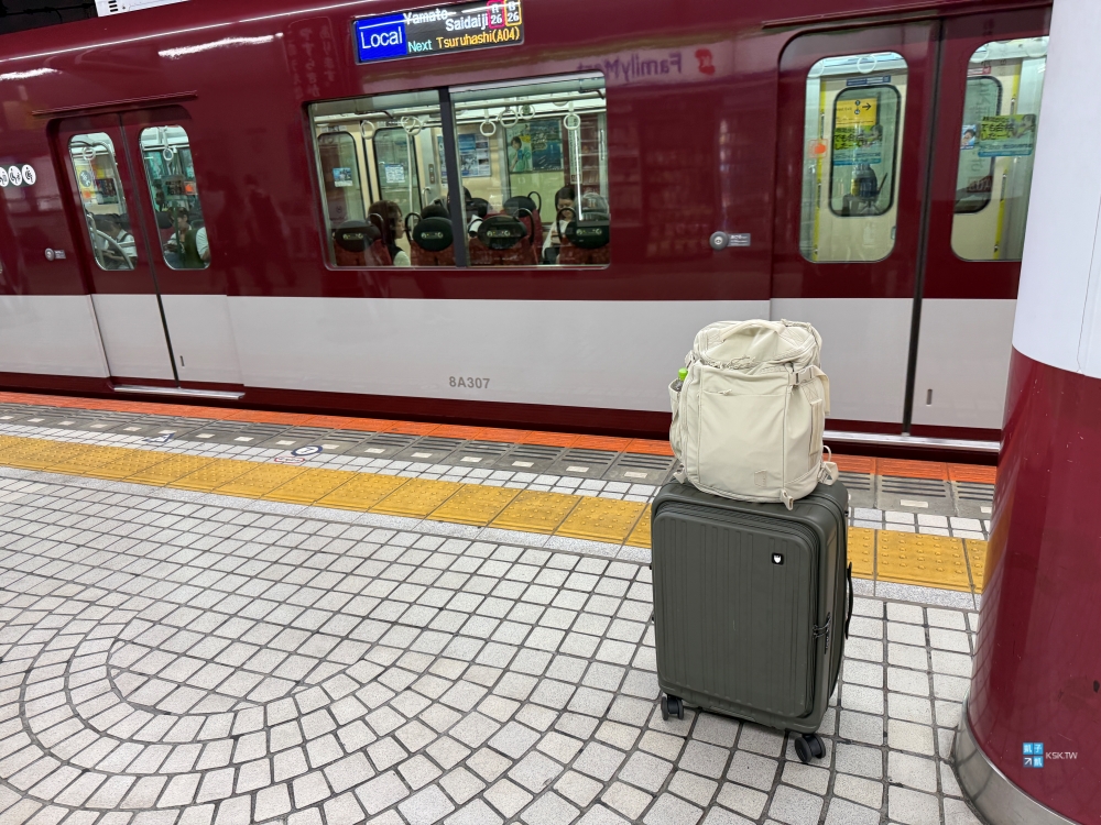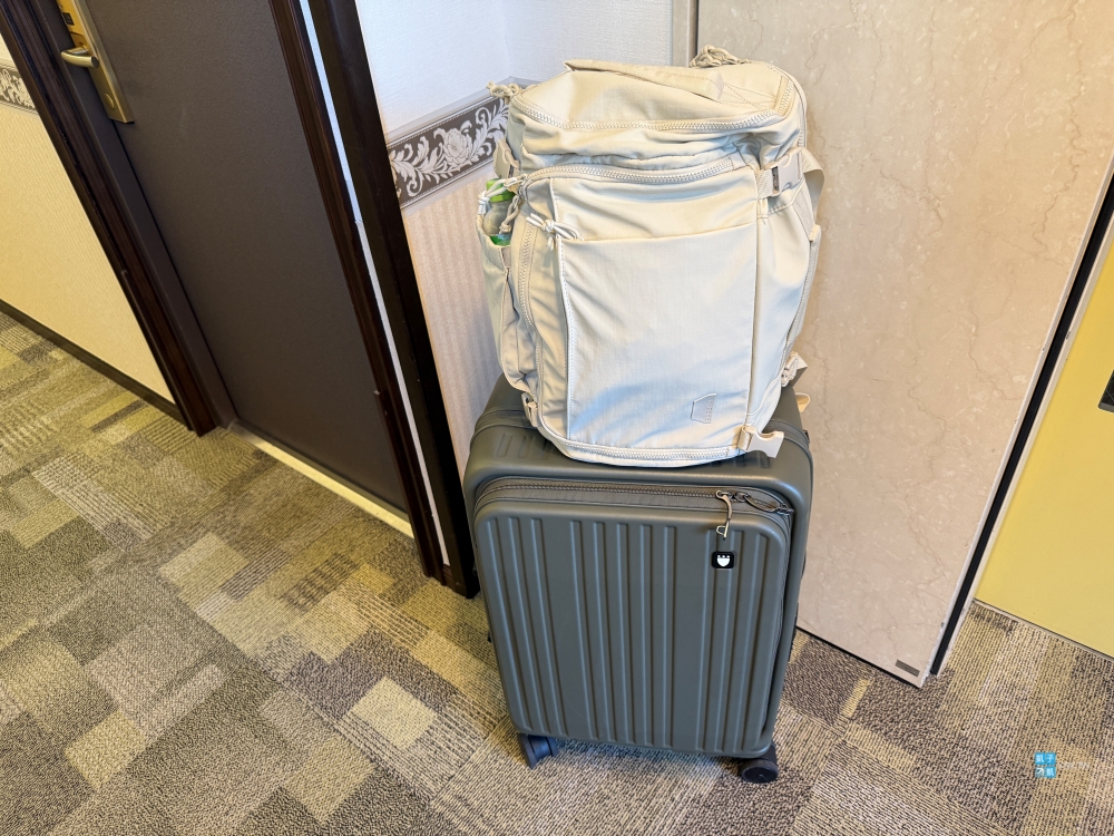 可以直接掛在行李箱上面拉著走,這非常重要啊!有拉行李箱時,就可以減輕自己雙肩的負擔~