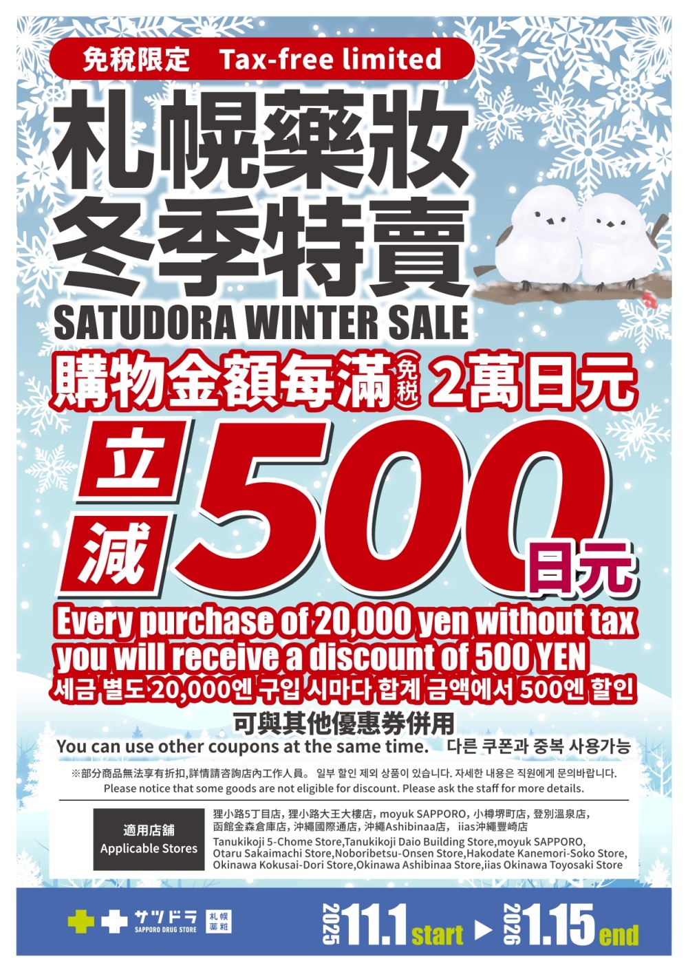 *此優惠券適用全日本札幌藥妝店之”免稅店鋪”