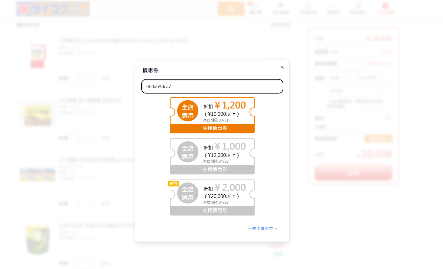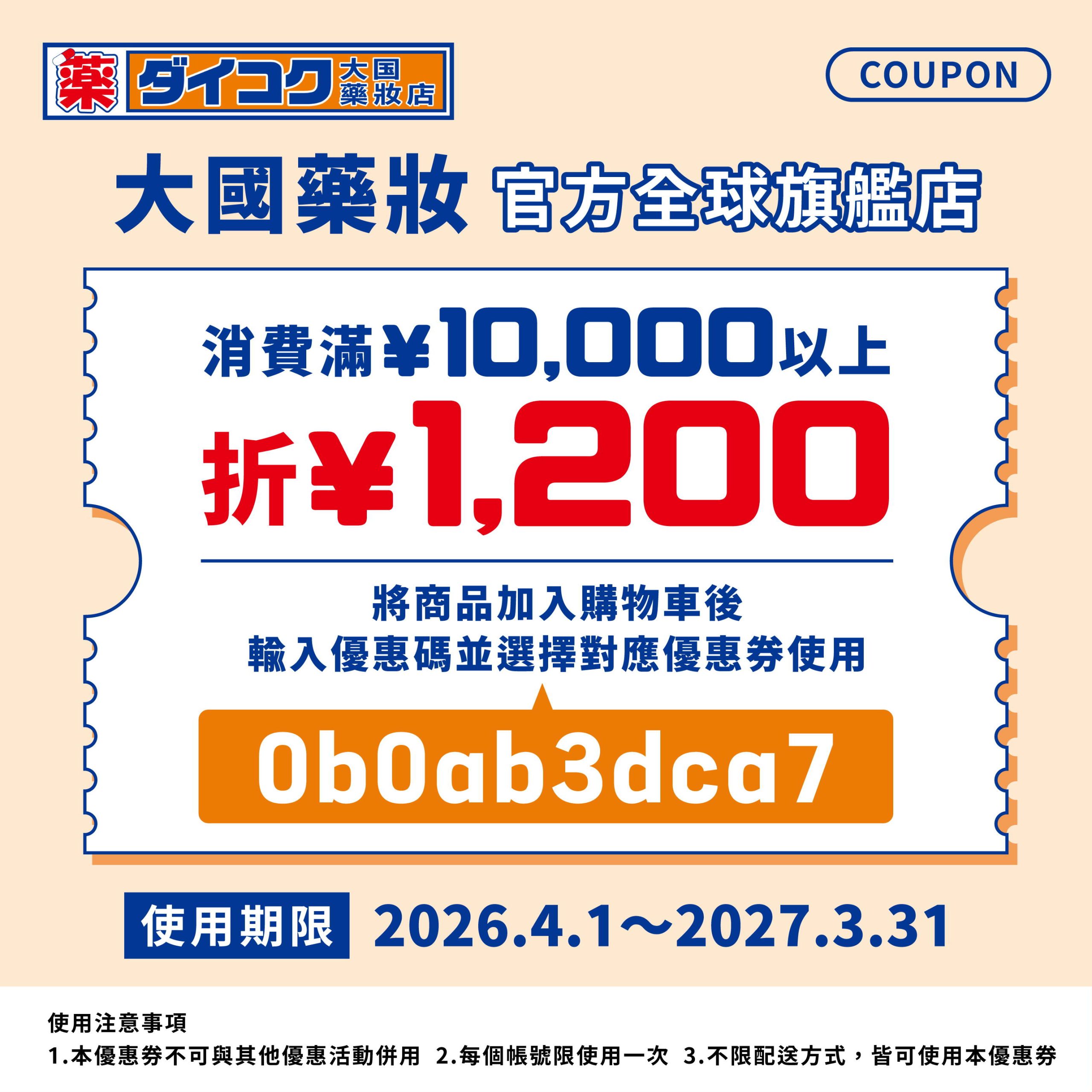 滿一萬日圓就可以折1200的優惠券折扣碼:0b0ab3dca7