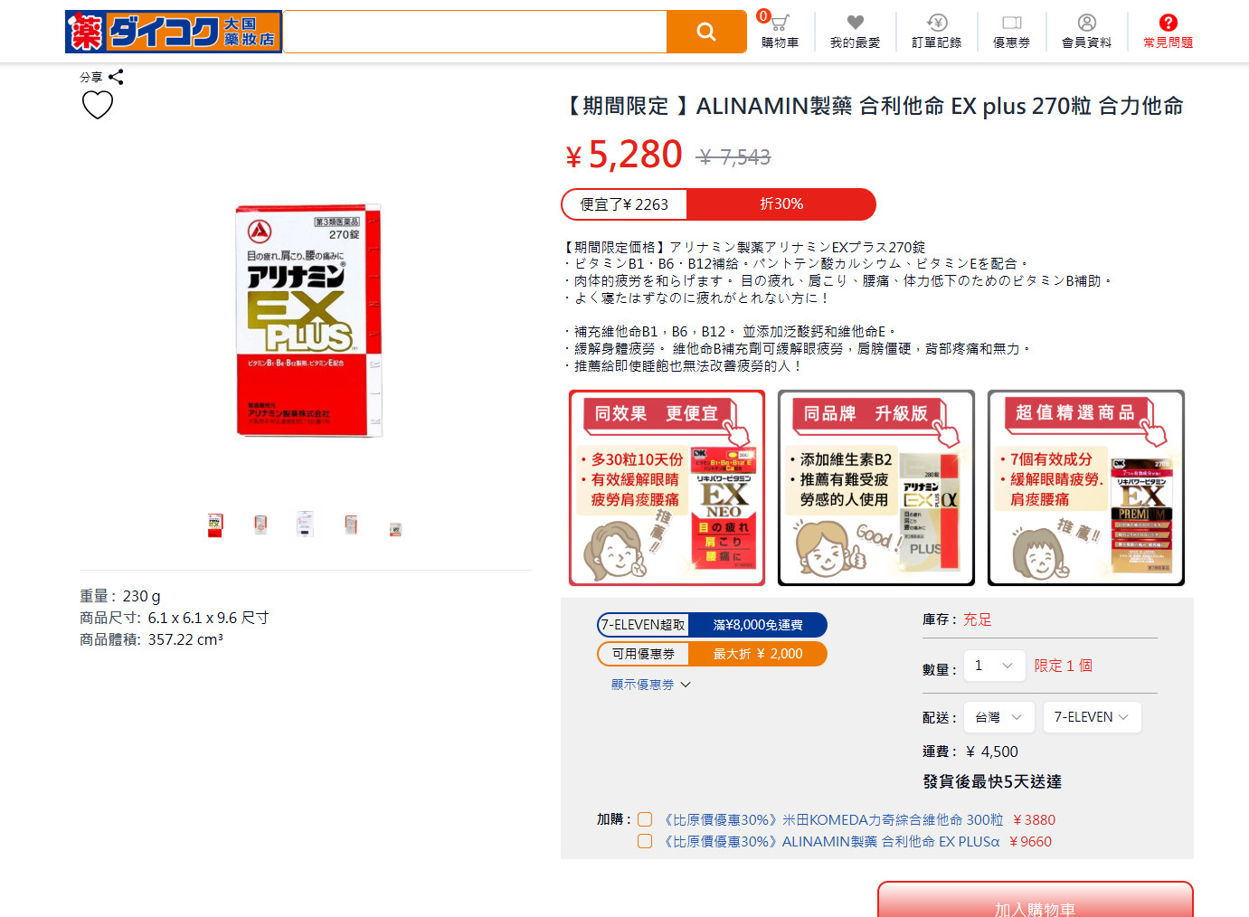 您可以看到武田合力它命EX PLUS才賣5280日圓,這價格已經比您在日本很多藥妝店看到價格都便宜了!