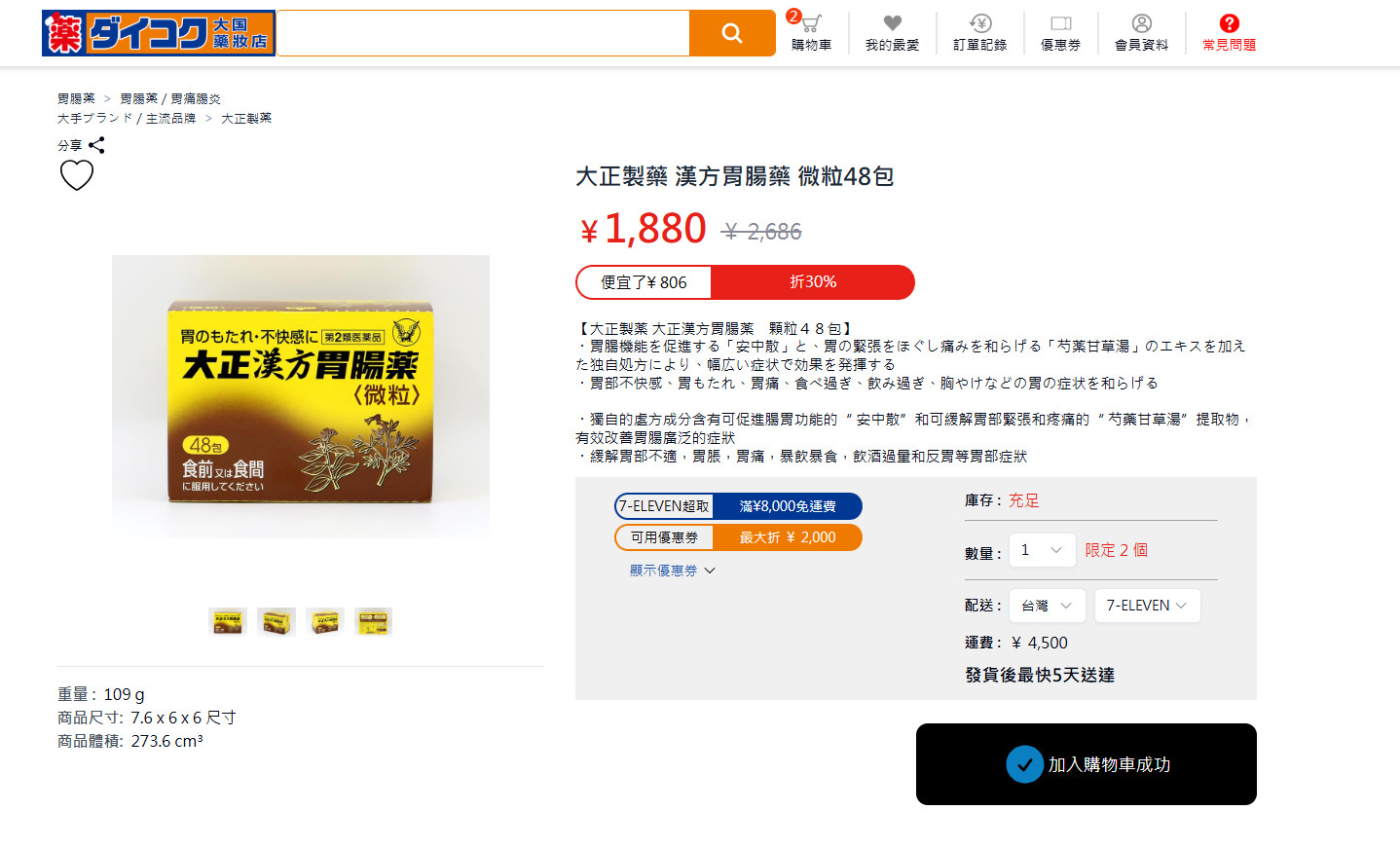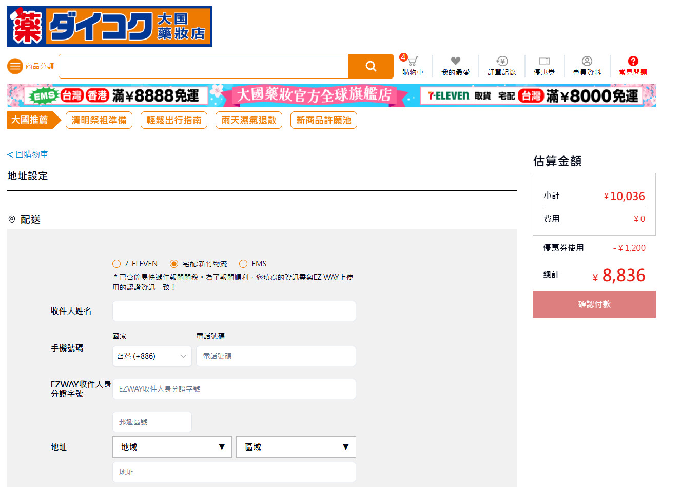 【大國藥妝線上EC官網】目前寄送台灣/香港也有免運優惠