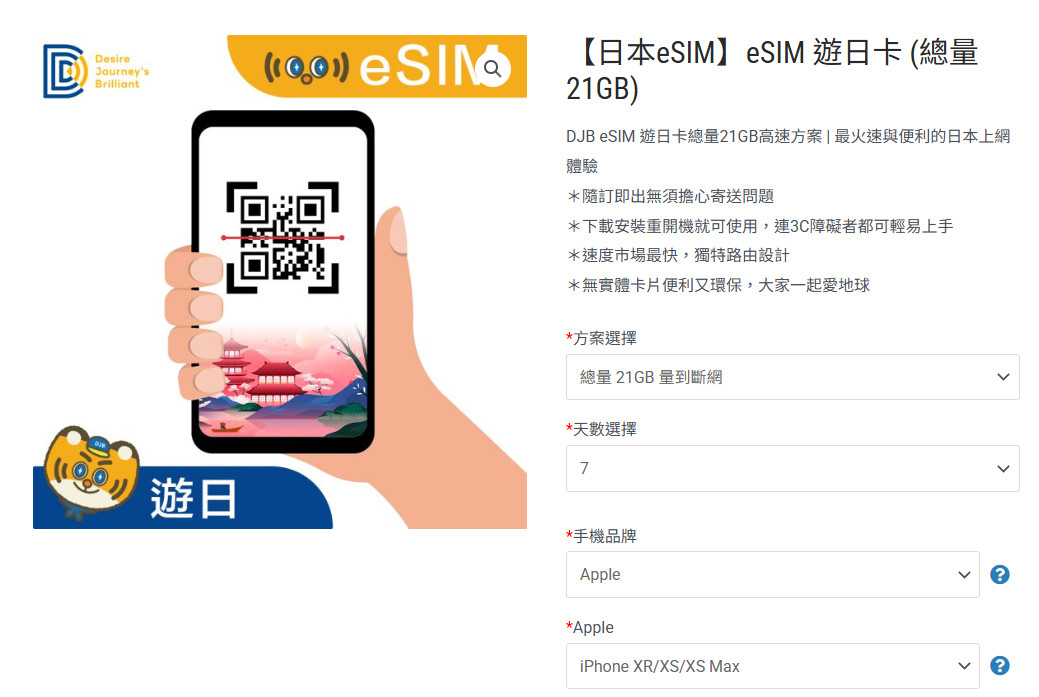 DJB玩日卡訂購連結:實體卡|無eSIM