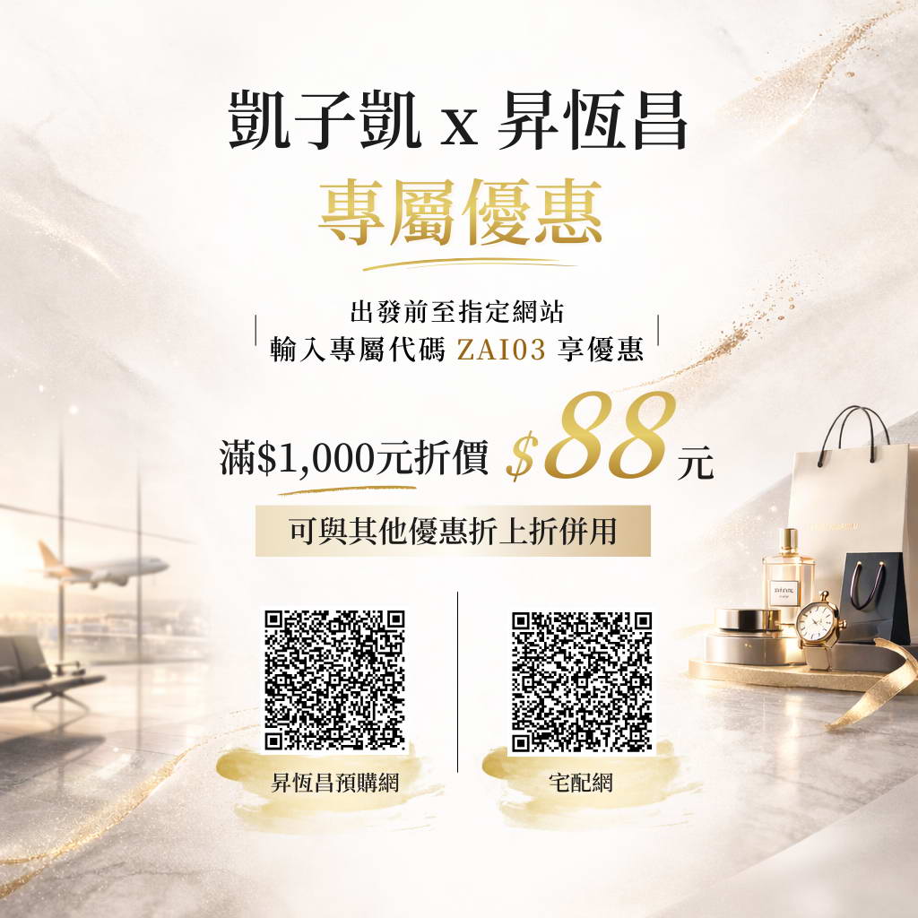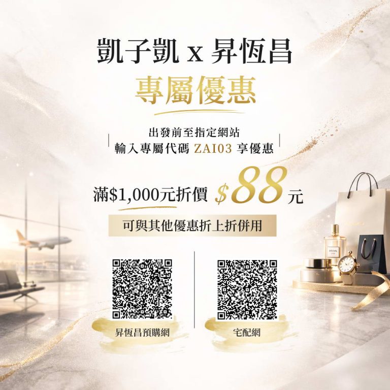 喜歡出國的旅客請務必看過來,昇恆昌預購網提供給台灣籍旅客線上購物優惠。在旅客出發前,於這兩個網站「輸入專屬代碼」:ZAI03,購物只要滿1000元,就可享有折價$88元優惠,而且還可與其他優惠折上折併用喔!這是凱子凱讀者專屬優惠,請多多幫忙使用啦!