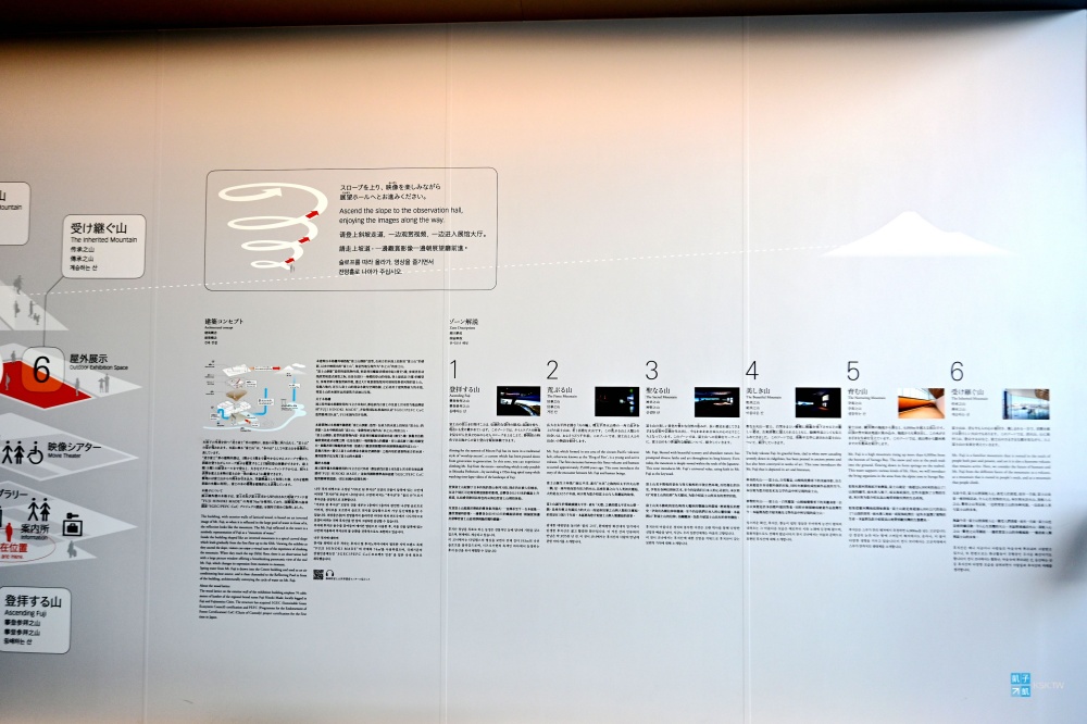 館內是設計成螺旋狀斜坡,讓您步步往上,彷彿在爬登富士山的感覺,透過裡面的影像介紹,將可了解到富士山的歷史、文化、自然各方面的知識。