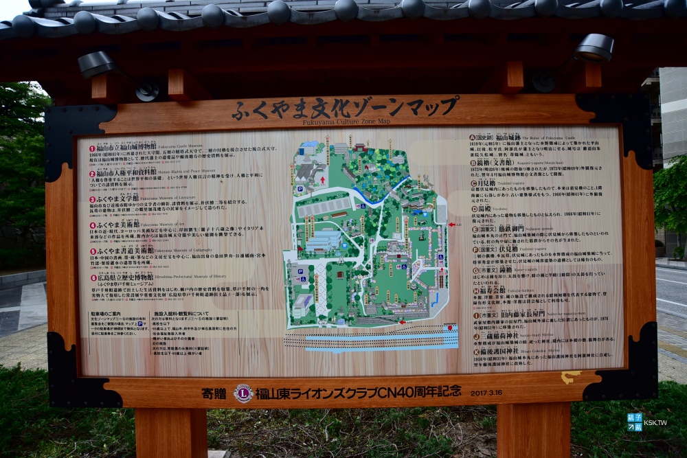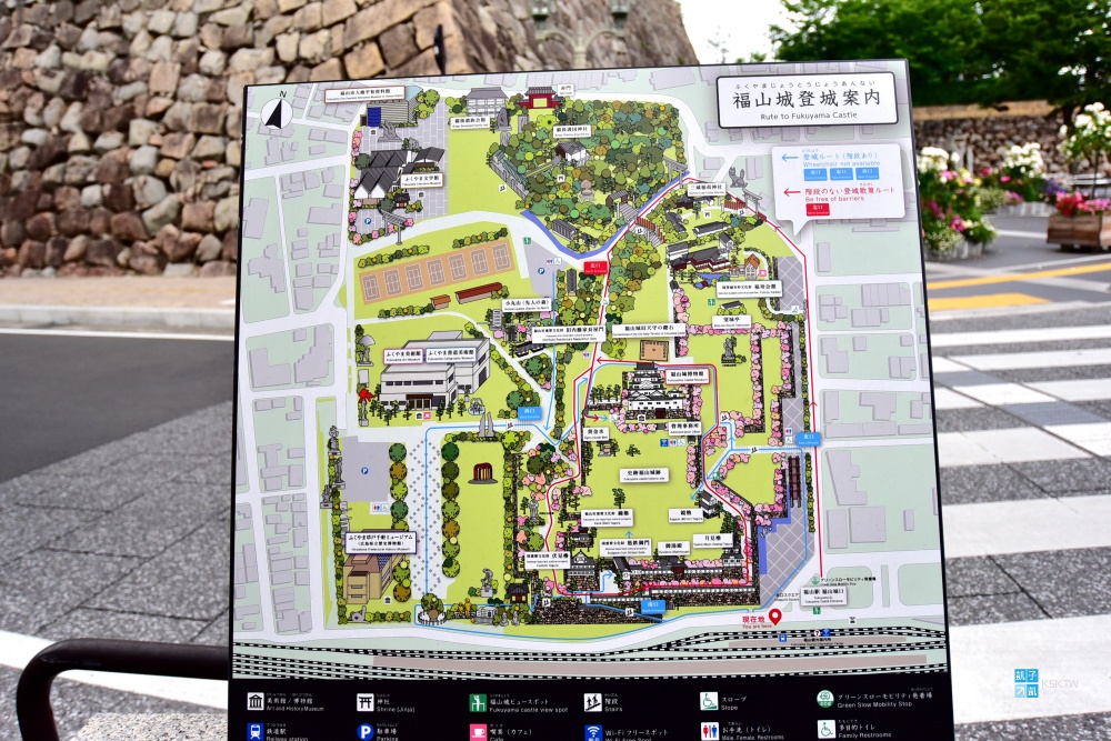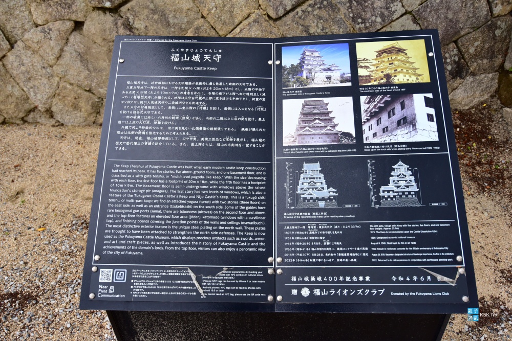 「福山城」築於西元1622年,首任城主正是江戶幕府初代將軍「德川家康」的表弟「水野勝成」,您來到這邊都會看到主打著築城400多年的歷史。但也受到1873年日本廢城令、1945年二戰空襲的影響,天守等建築受到嚴重毀損,是直到1966年才重建天守閣、月見櫓…這些,2022年在進行築城400年的大規模整修之後再重新開放。