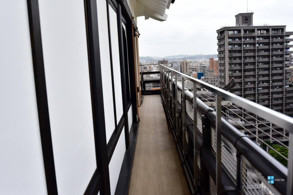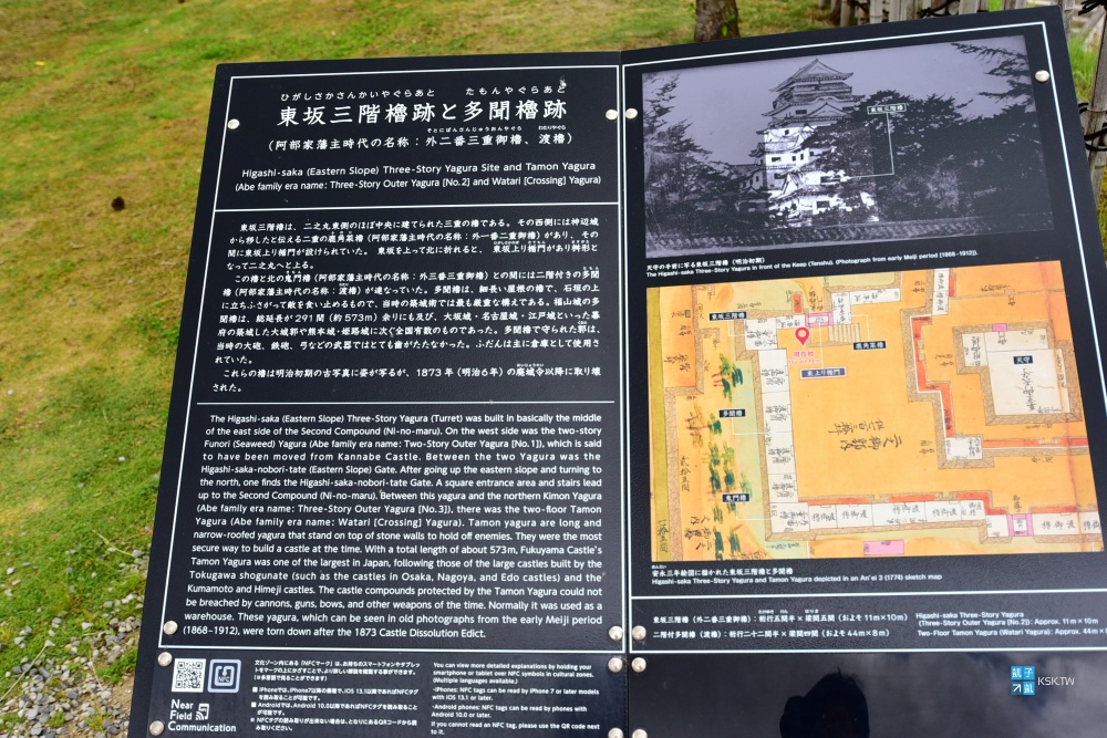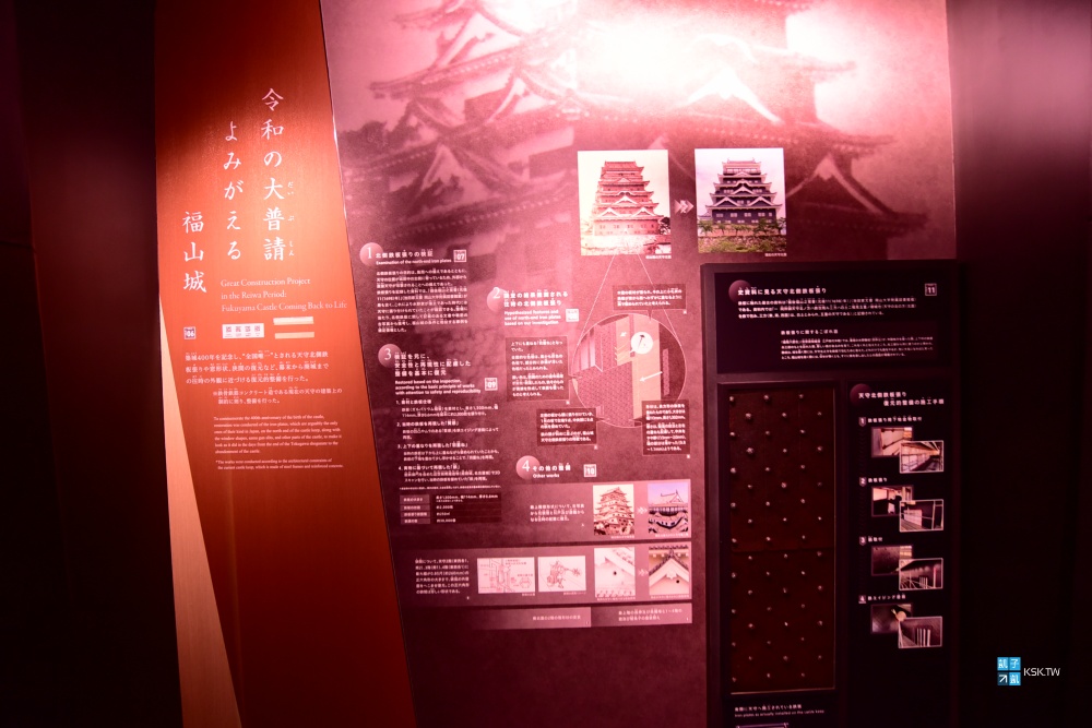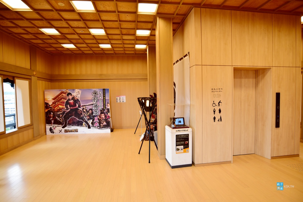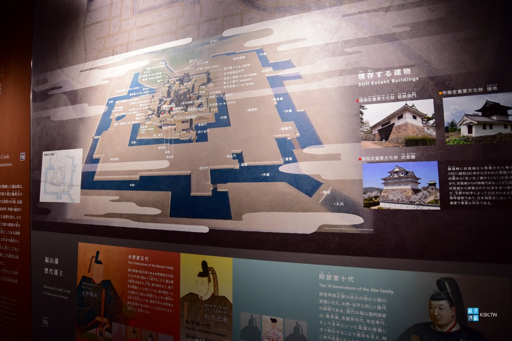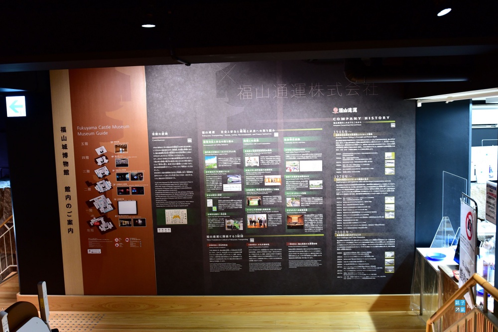 所以那時我在2023年5月疫情解封半年後,可以重新進入到福山城內部,也算是蠻幸運的呢!在進行過整修之後,內部算是煥然一新的感覺,也有電梯提供給行動不便的旅客可以輕鬆登城,並設計了「福山城博物館」在城內,利用科技設置了互動設施,讓旅客來到百名城內也可以參與一些活動,算是增添挑戰登城的樂趣吧!