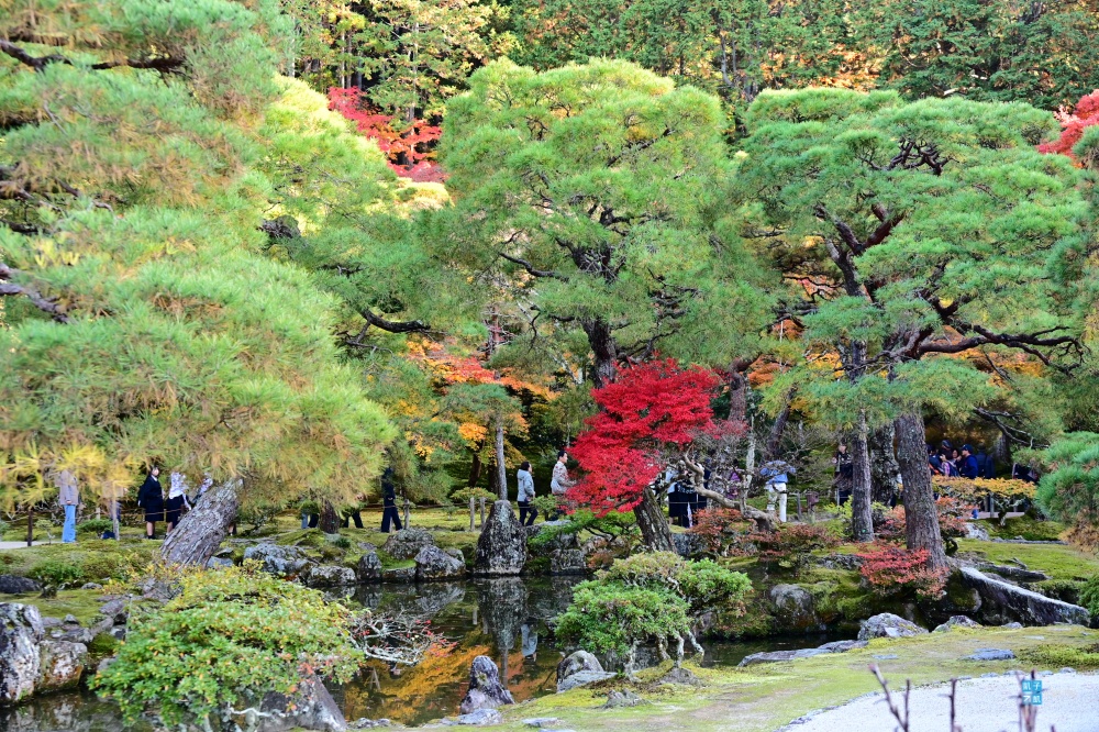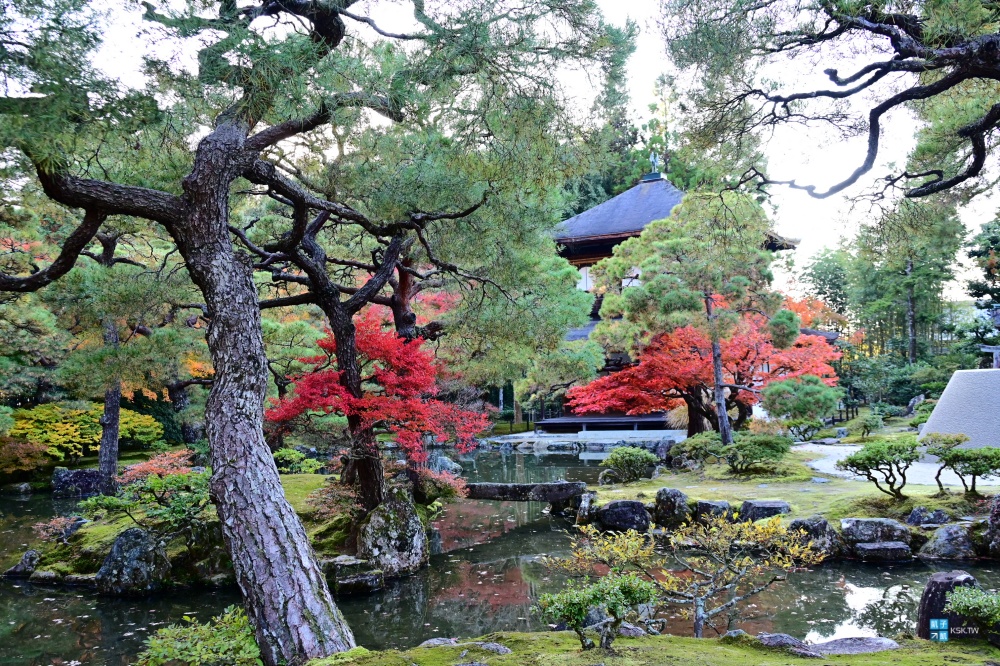 銀閣寺裡面的庭園我覺得整理得井然有序,白砂建造而成的銀沙灘、向月台,搭配許多形狀奇特的松樹,以及正值見頃的紅葉,現場真的感到相當優美!