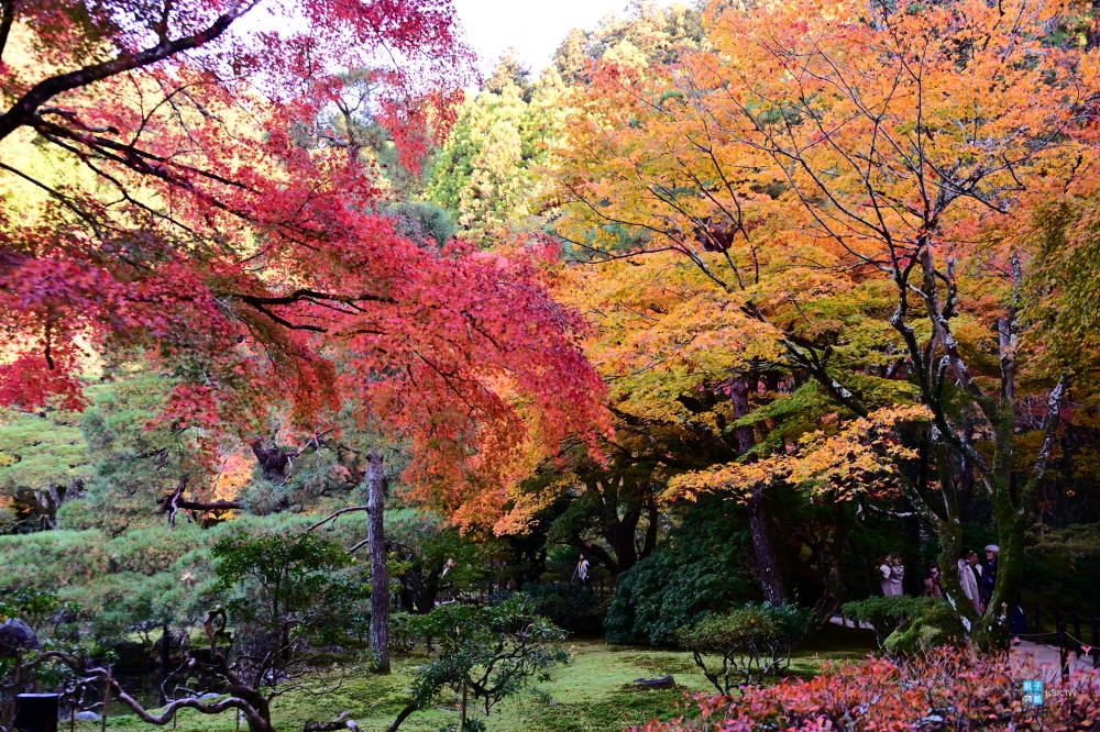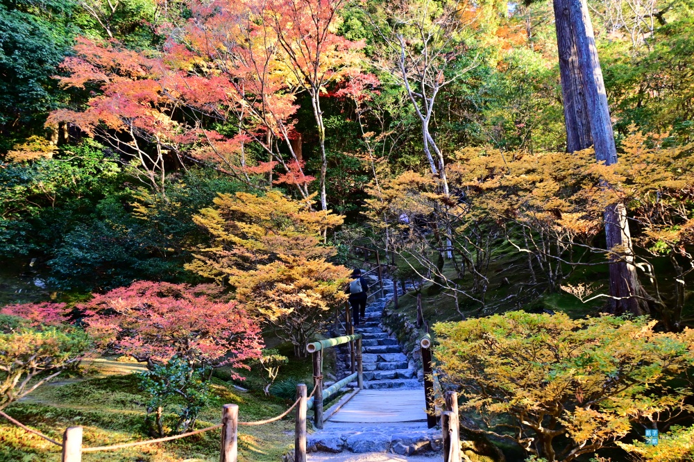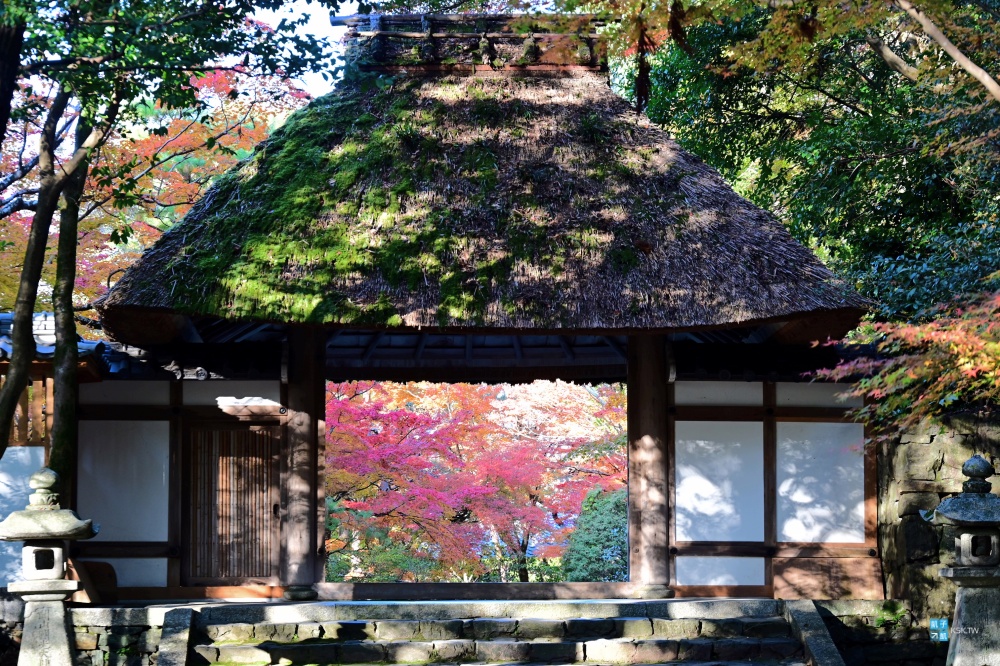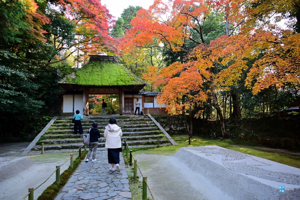 銀閣寺、哲學之道旁邊的小景點,最具代表性的景觀就是長滿青苔的茅草山門,被秋葉環繞的畫面。