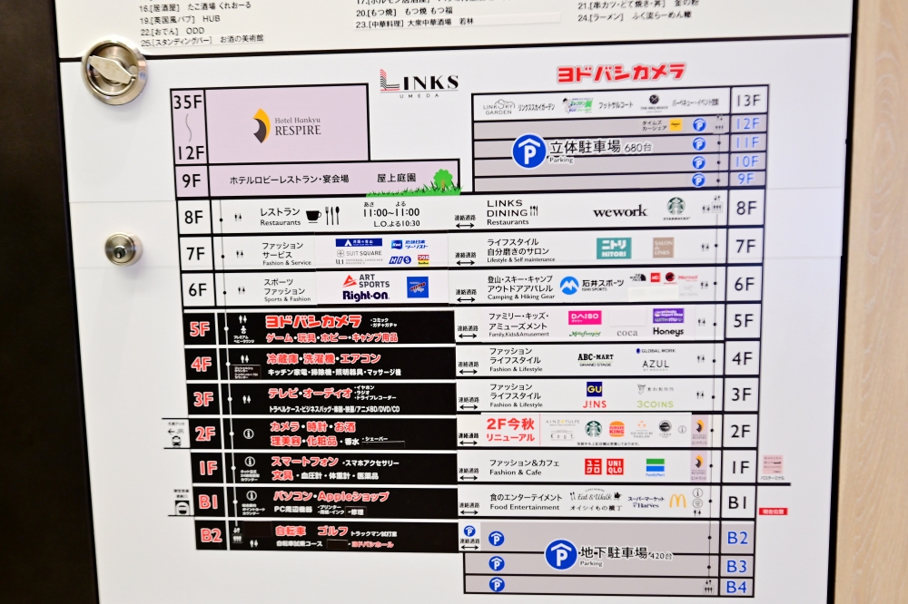 JR「大阪」駅建議從二樓走天橋來到LINKS UMEDA這棟之後,再轉往B1樓。(反正就請瞄準Yodobashi電器這棟就對啦!)
