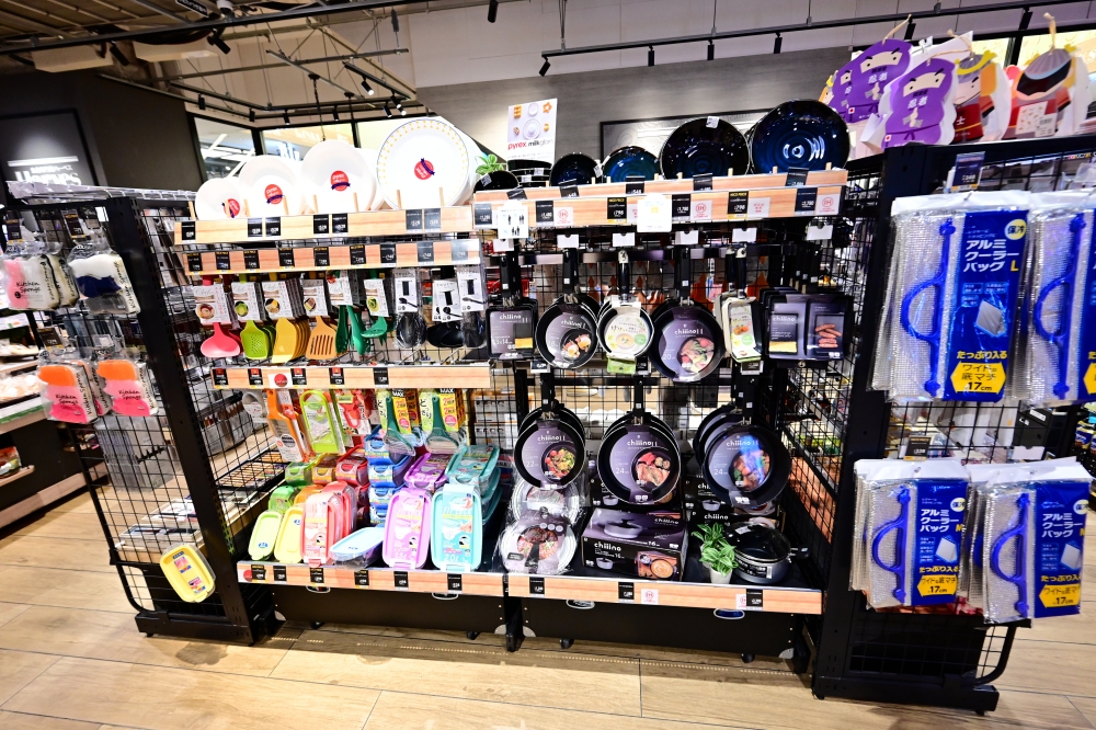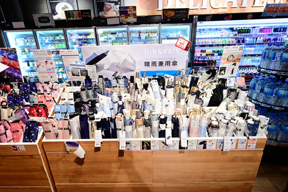 在結帳櫃檯旁邊也可以順便選購一些日常生活的用品,像是這幾年日本夏天相當炎熱,晴雨天兼用的傘就都賣得蠻好的。另外就是一些跟廚房有相關的一些用品,便當盒、便當袋、筷子、水壺、鍋盤、料理器具、造型購物袋….等。家裡有孩子的話,就很適合幫他們準備這些好看的便當盒跟便當袋,日本超市真的很多好東西可以挖寶呢!