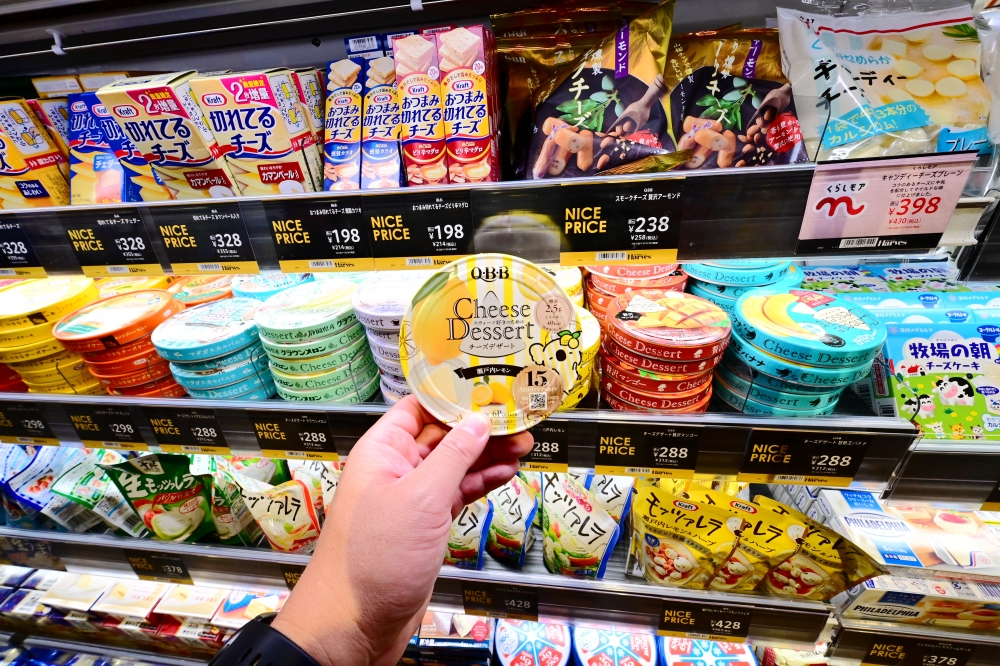 逛日本超市不容錯過的還有起司、優格、布丁…等甜點美食。像是QBB的cheese在日本可是超級人氣的,同時也深受外國旅客所喜愛,甚至還聽過有旅客會在旅途的最後一天,來到超市大量採購後,再放入保冷袋內、帶回國分享給親友,真是太有心了!我這次也有在「Harves LINKS 梅田店」購買QBB的cheese,免稅櫃台人員也有詢問我是否需要保冷袋,但我跟他說這個跟布丁要另外結帳,因為我等一下就要打開享用啦!