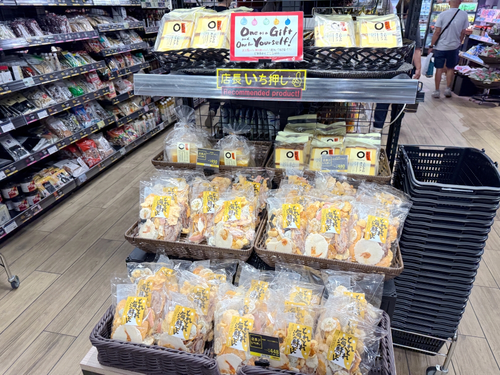 旅遊的時間就是金錢,如果您沒有太多時間逛伴手禮店的話,其實也可以考慮一併在超市內解決!在「Harves LINKS 梅田店」內也可以買到許多日本各地的土產伴手禮,像是大阪非常知名的「月化妝」牛奶饅頭,據說是暢銷到每2秒就賣出1個!看到「店長 いち押し」的貼牌,就知道是店長極力推薦的商品,這種都很適合買回去送親友!