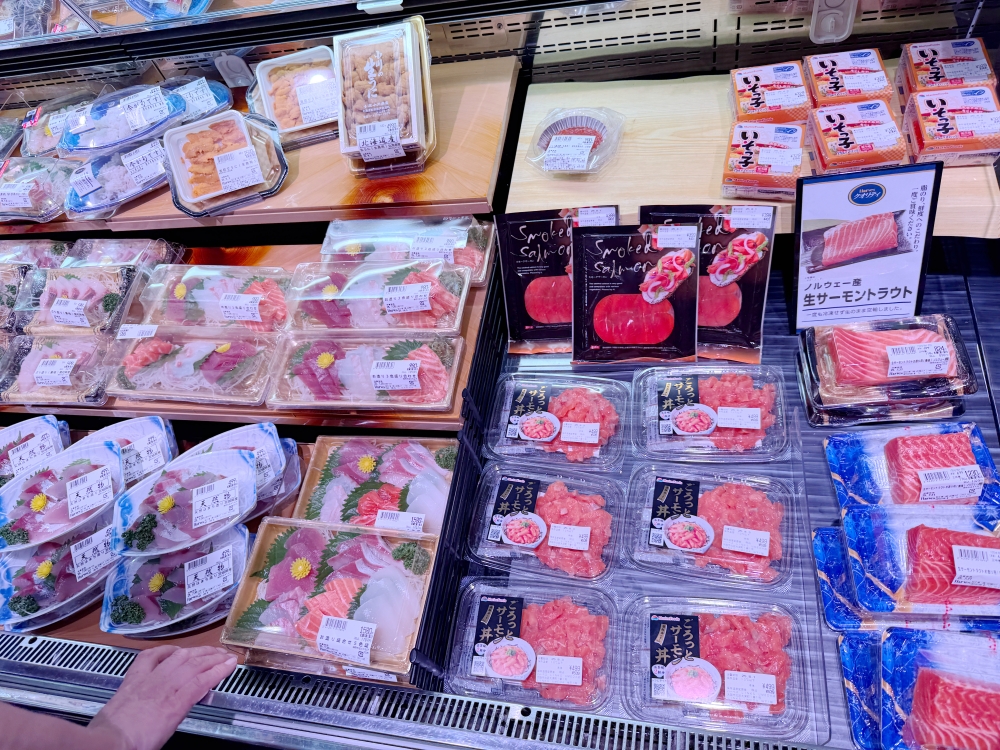 另外也提醒,「Harves LINKS 梅田店」內販售的生魚片壽司品項相當多,除了在「Fresh Fish鮮魚區」這邊的冰櫃這區之外,還可以在起司甜點區旁的冰櫃裡面看到有許多完整包裝的生魚片壽司在販售。推薦您可以兩邊都看一下,選擇自己最想吃的。
