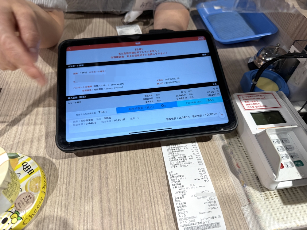 若有要在日本當地使用或食用的商品,也可以在免稅櫃台這邊跟服務人員說要分開結帳即可。
