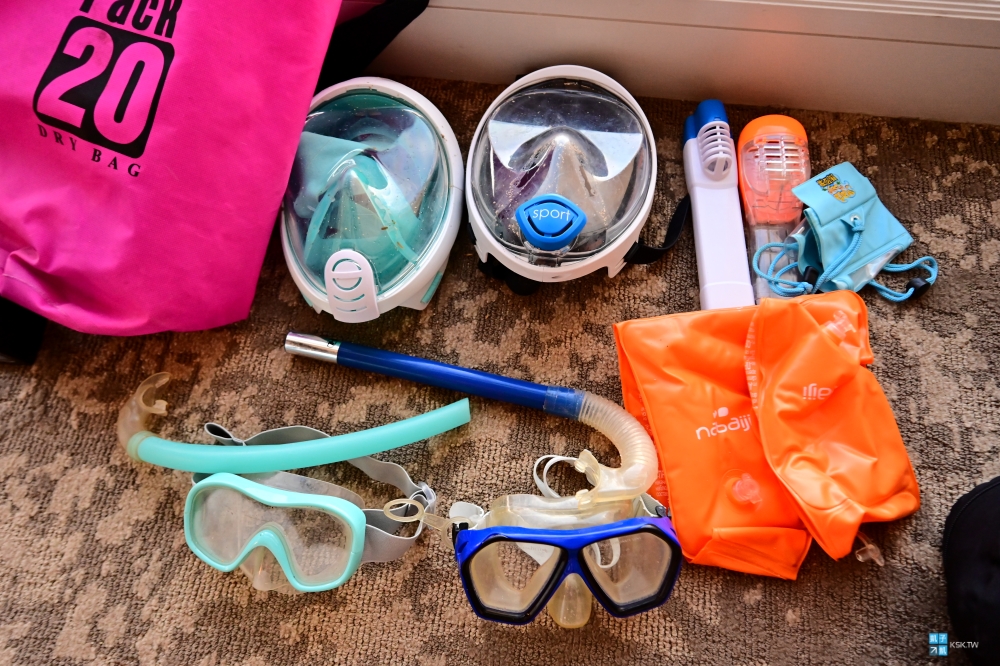 *浮潛泳鏡、浮潛衣&褲&鞋,都建議準備!因為珊瑚礁很容易刮傷您的腳,這些平常就可以備起來。我們把多年前去馬爾地夫跟長灘島的這些浮潛用品通通找出來,帶去夏威夷。其實您在台灣就可以去迪卡儂把這些用品買起來,台灣的物價相對還是比美國便宜很多。(現場也可以租到這些浮潛用品,但我覺得這筆錢是可以省下來的,就自己準備即可,到海島國家旅遊都還有機會用到。)