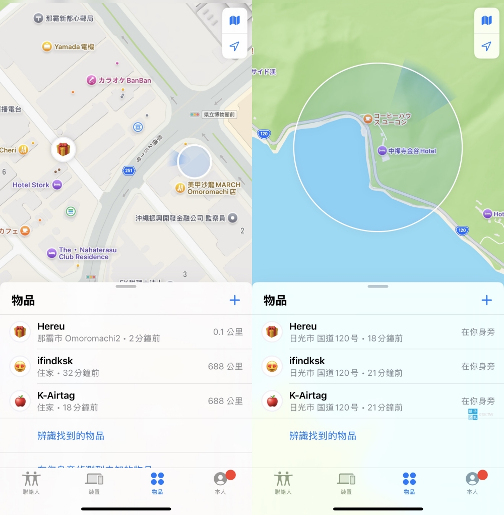 帶出去外面實測,我綁定兩顆定位器裝置是沒有問題的,定位也算精準,實際測試如下!