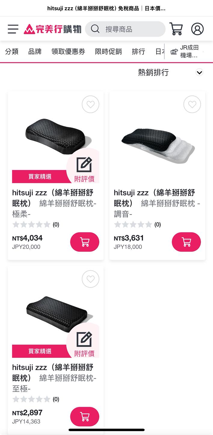 什麼!!完美行購物也有賣「不用數羊的枕頭」!可可可惡…那我在Bic還買貴了!
