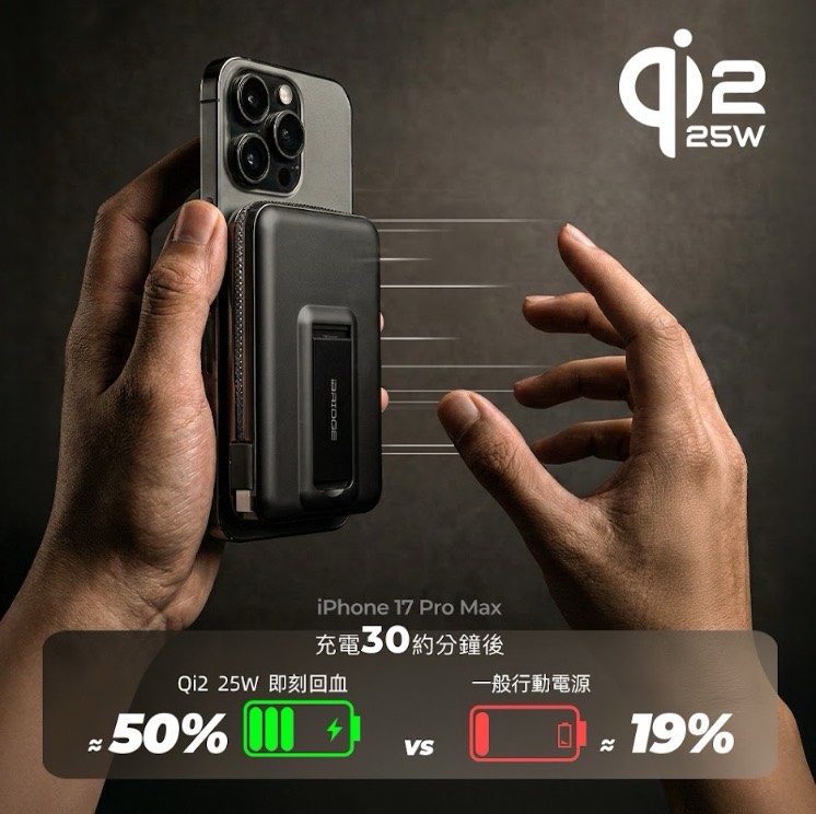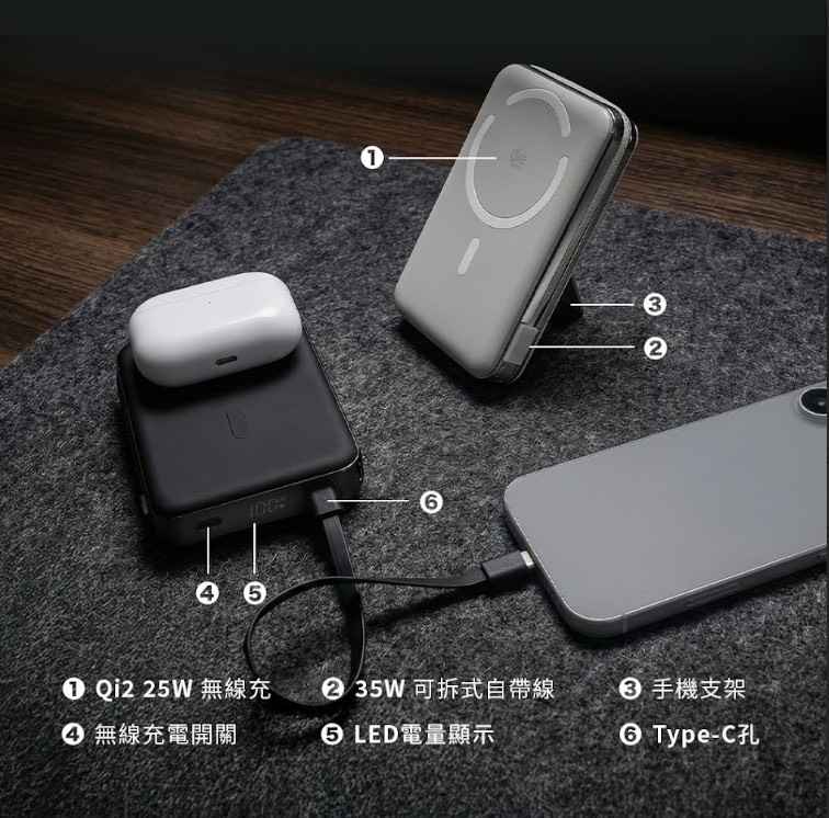 賣點: 業界領先 Qi2 25W 無線閃充(30分充50%)、10000mAh 大容量。