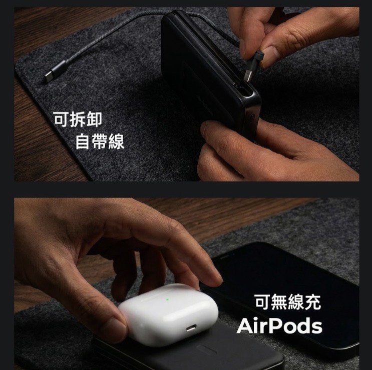 市面上跟這顆長得很像的行動電源非常多,但我有用過充超慢的,但這顆的無線充電算蠻快的,而且也可以無線充AirPods。
