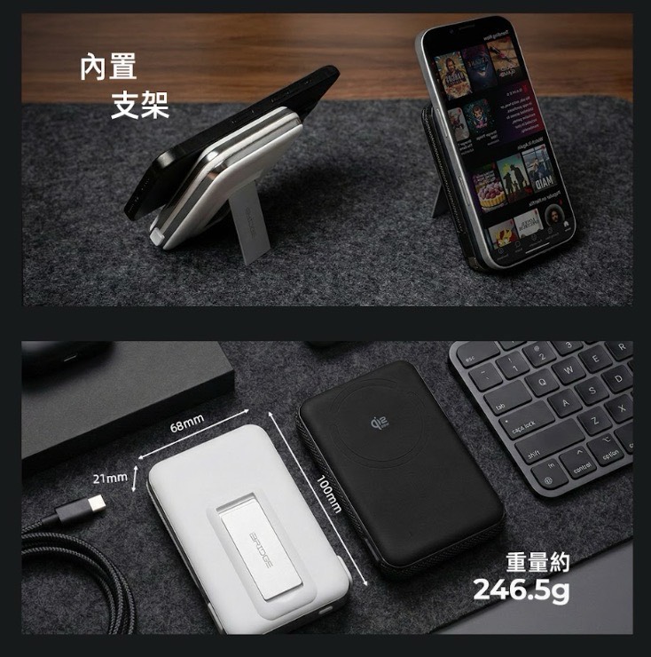 整體重量 246.5g,以Qi2+無線+固態+自帶線+支架的組合來說算精巧而且最棒的是,不用再當「線材奴隸」