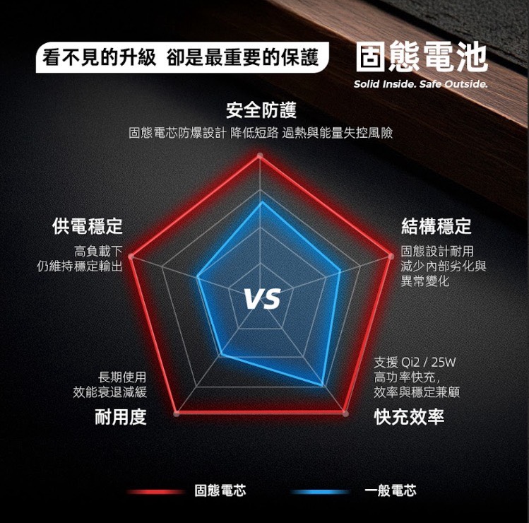 這顆直接用 SSB固態技術 → 熱穩定、防爆更安全