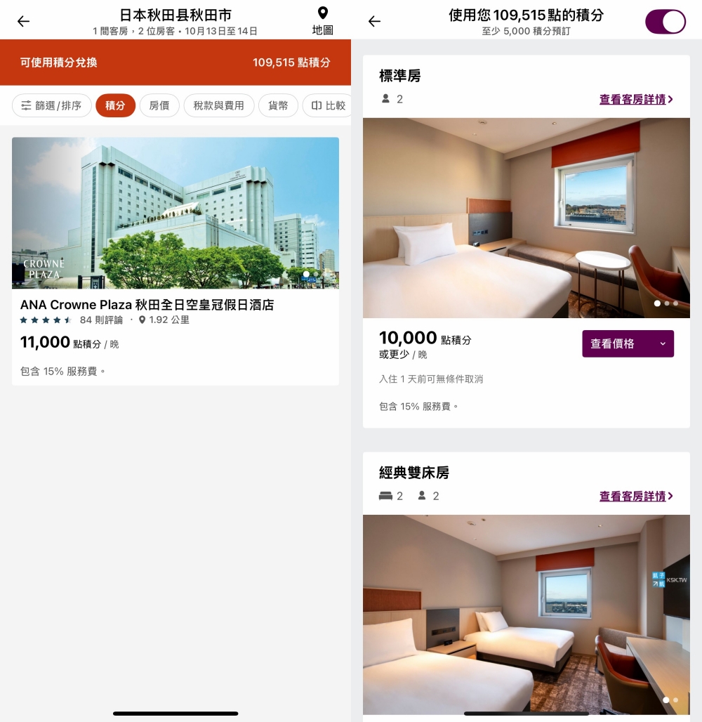 IHG常會舉行點數特賣,特別是100% Bonus就是最佳購入好時機!IHG點房是浮動價格的,每晚的所需點數也都不太相同,另外也要注意有些飯店是含稅、有些則是還要加個10%的稅。所以您訂房時還是要精算一下,有時候可能訂下來不見得比您透過訂房網站還划算,有時候則是有機會省下一半房價。如果您可以找到一晚10000點的積分房,那就是台幣只要1400-1500元。