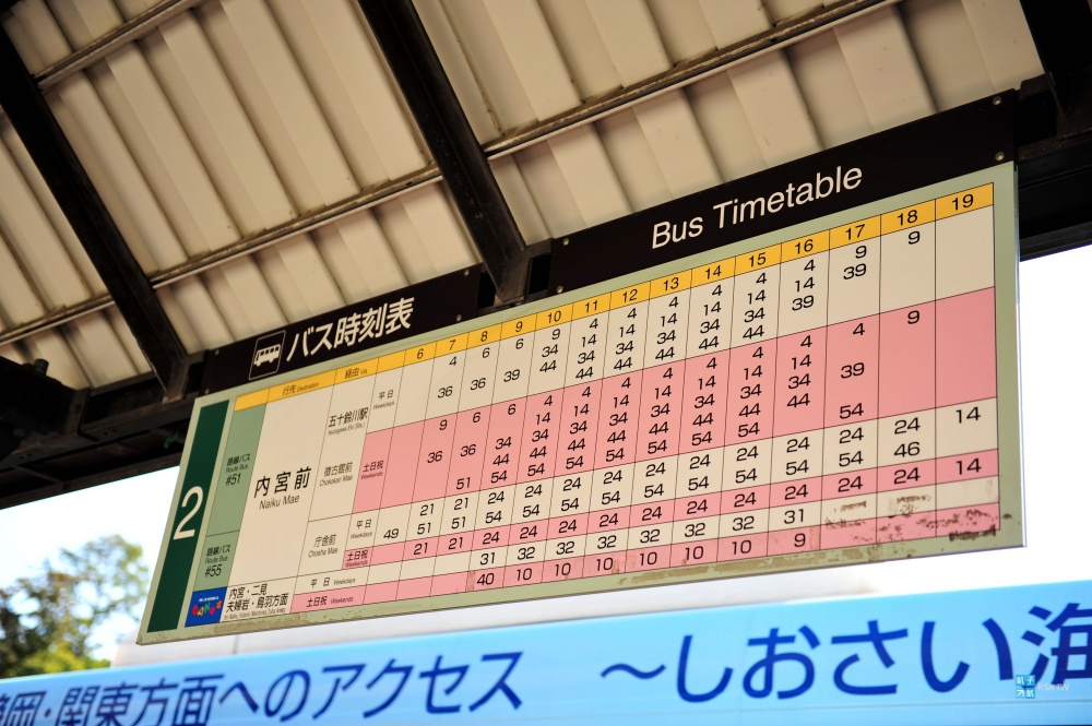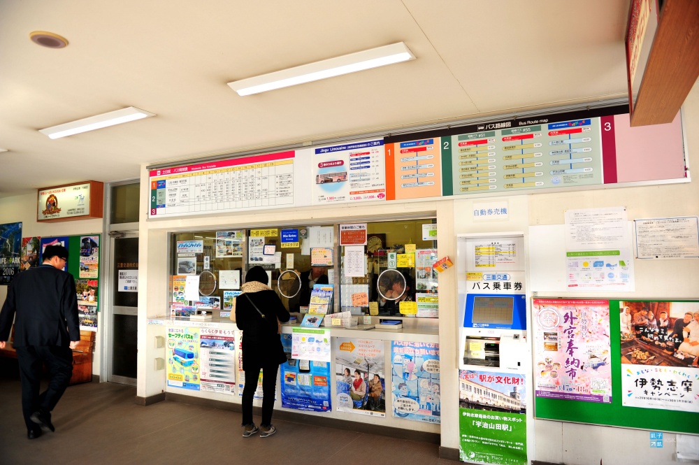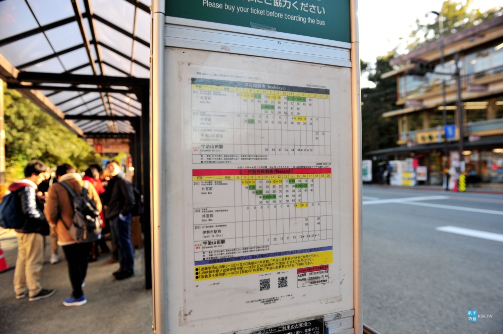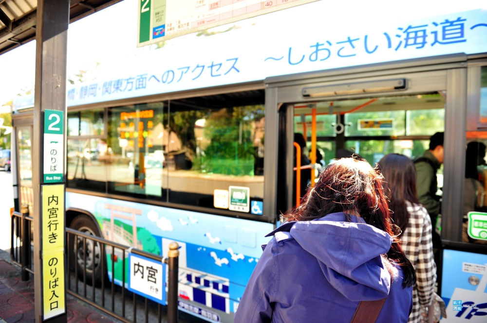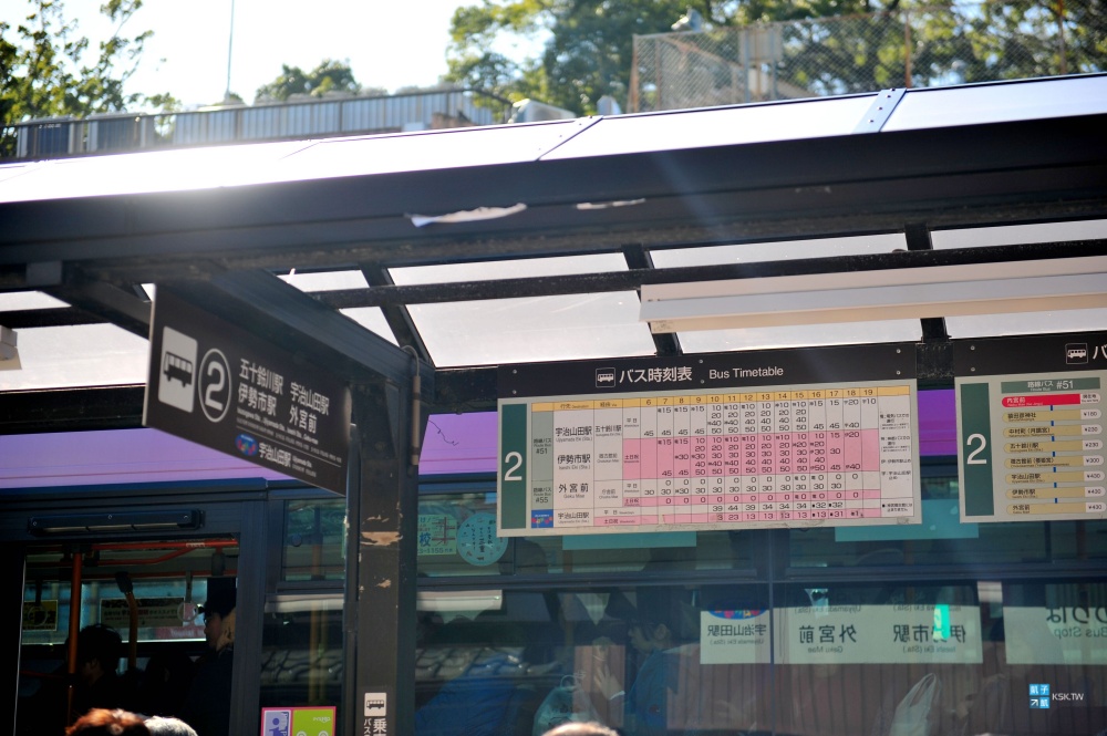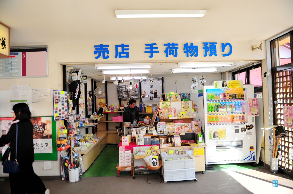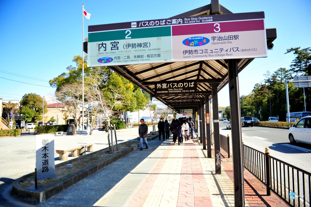 來到伊勢神宮的內宮前,看到門口巴士站牌的規模,就知道這邊絕對是人潮聚集的大景點了,這裡的店家也有寄放行李的服務。來往外宮內宮的巴士班次是蠻多的,這不用太擔心,因為每天的旅客實在太多了!