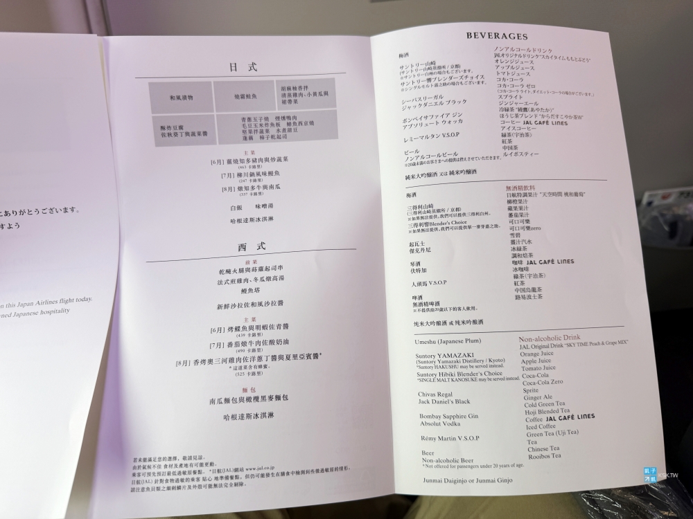 日航的優勢還是空服員態度真的超好,笑容滿滿地接待旅客,餐點品質也是有一定水準。分享這次點的日式跟西式飛機餐的菜色,感覺和食還是比較推。