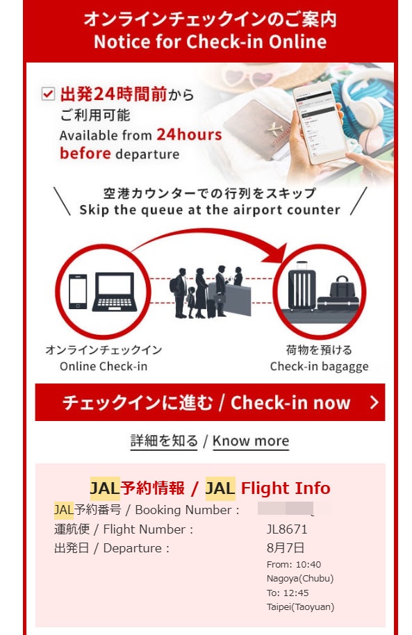 起飛前一晚我也到日航官網去劃位,另外也有收到來自日航的搭乘通知信件