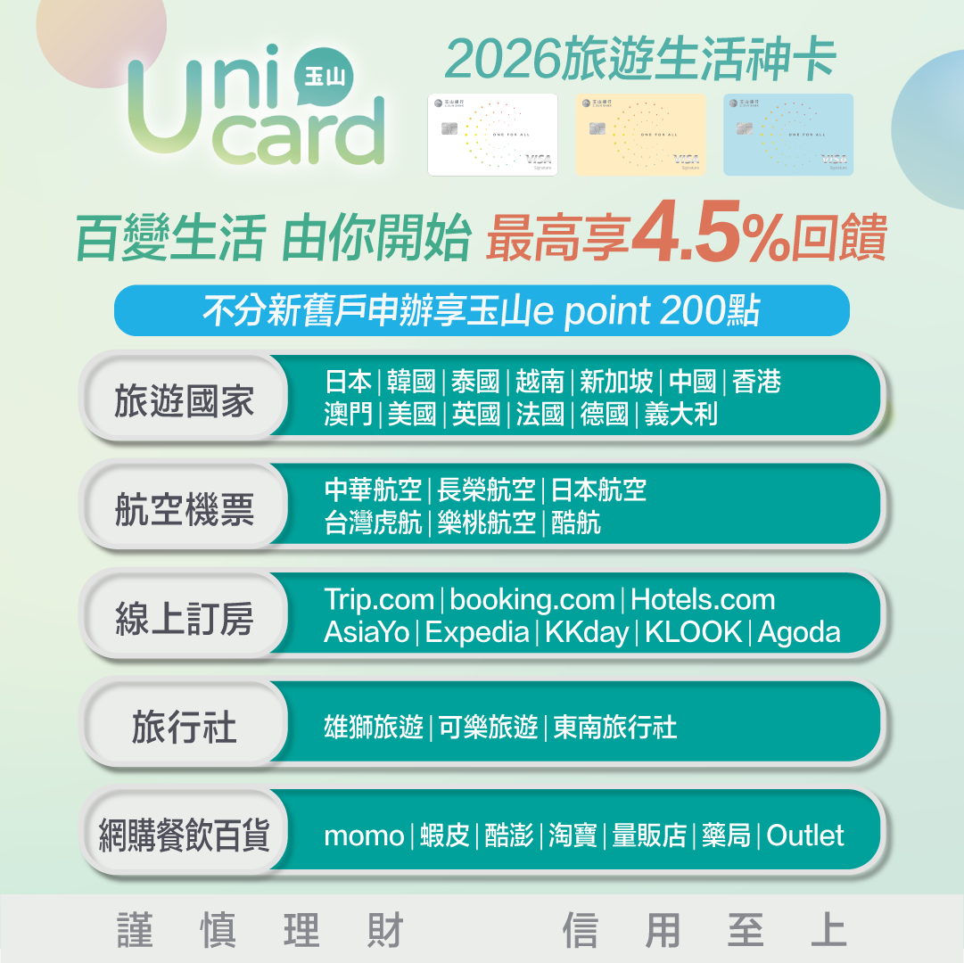 1.玉山Unicard卡 (~2026/6/30)