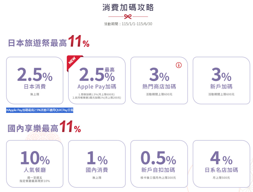 專文介紹:【日本旅遊必備神卡】日幣消費2.5%回饋無上限、日本Apple Pay 4%回饋