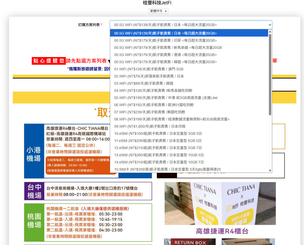 JetFi Mobile提供全省多個地方可以取還件,桃園機場與高雄小港機場也都有服務!