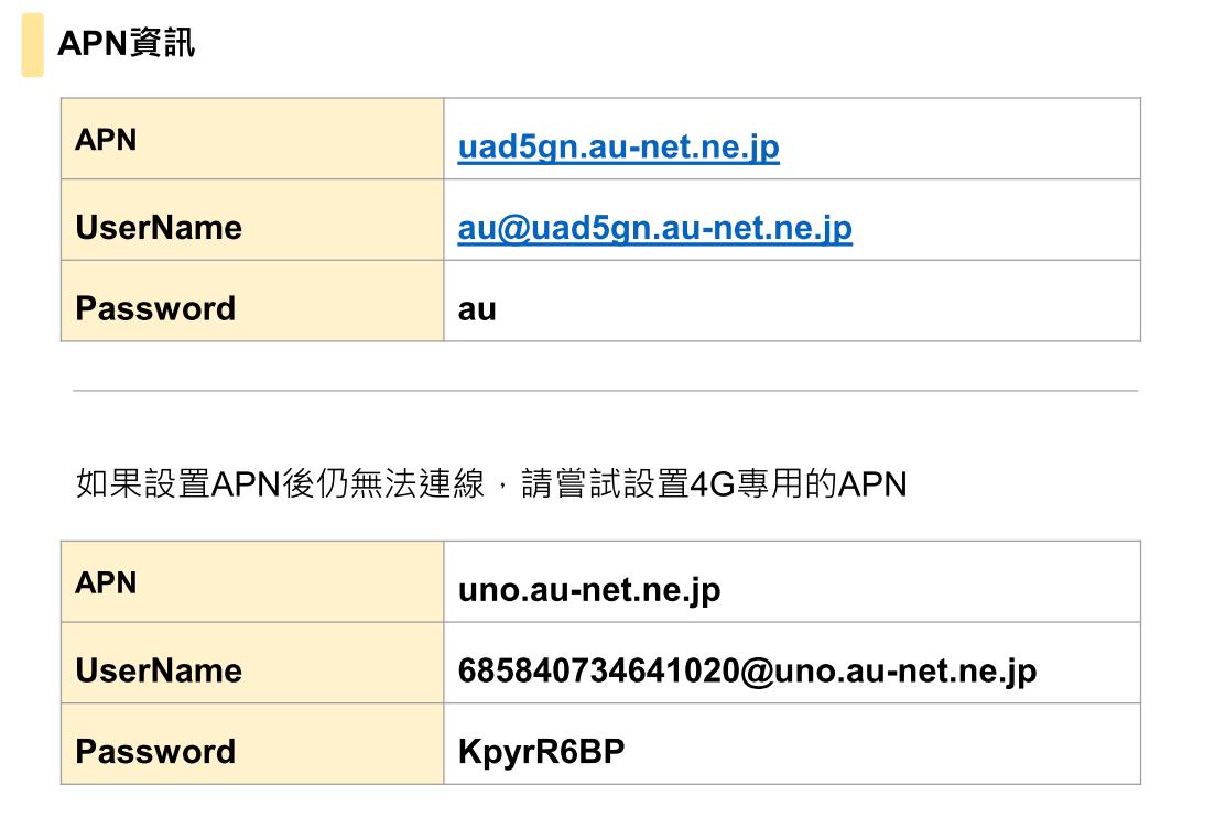 KDDI 原生卡的 APN設定